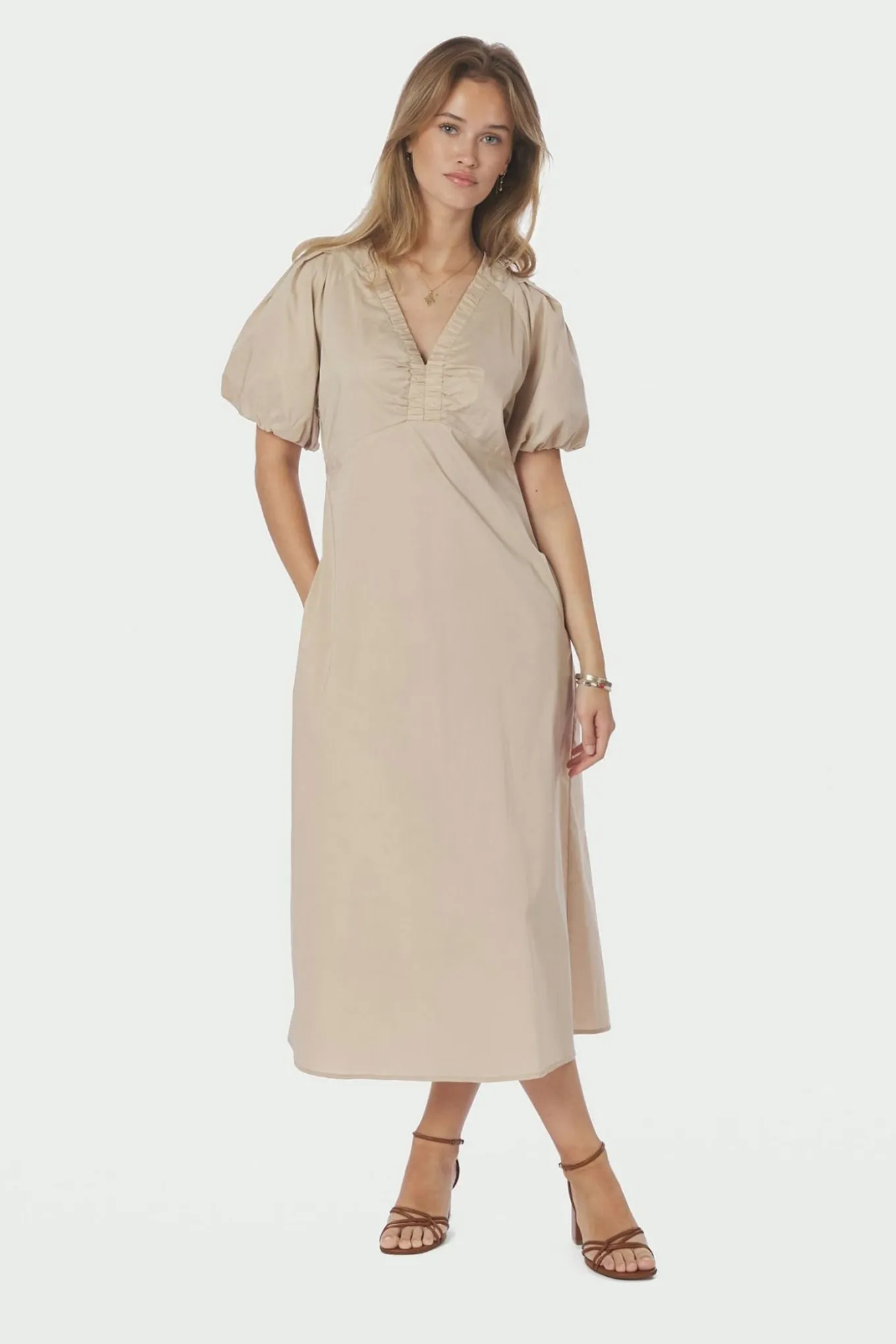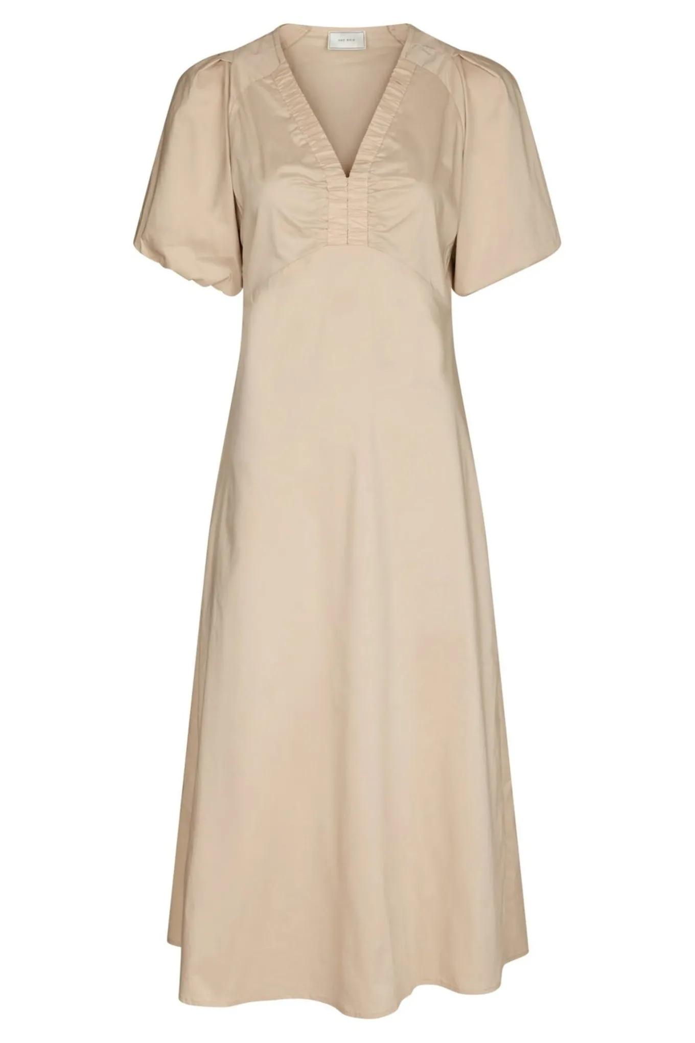 Smuk og elegant kjole i mørk sandfarve. Fremstillet i luksuriøs poplin og designet af Neo Noir. Perfekt til enhver lejlighed og giver et sofistikeret look. Fra Neo Noir.