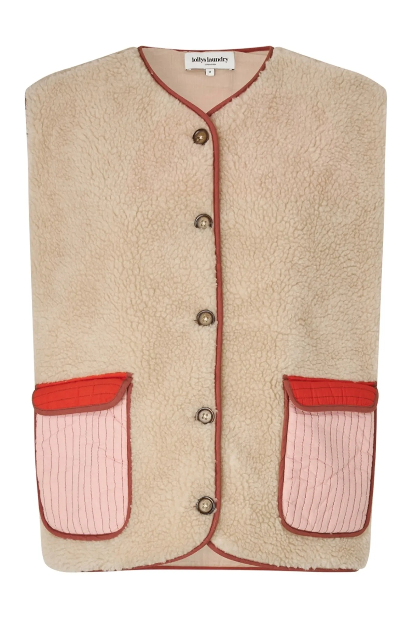 Denne smukke vest fra Lollys Laundry i farven 04 Sand er lavet af 100% polyester og har et blødt for af 100% bomuld. Perfekt til enhver lejlighed.