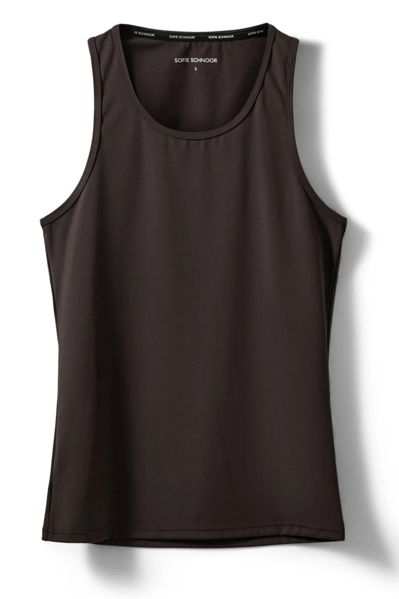 Opnå en sofistikeret stil med denne top fra Sofie Schnoor SPORT. Den dybe mørkebrune farve og blandingen af nylon og spandex skaber en perfekt pasform og komfort.