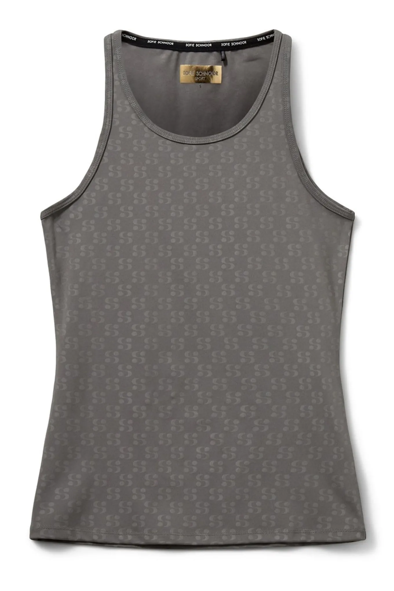 Skab et sporty og stilfuldt look med denne top i en dyb charcoal grey farve fra Sofie Schnoor SPORT. Lavet af 92% polyester og 8% elastane, er den perfekt til både træning og hverdagsbrug.
