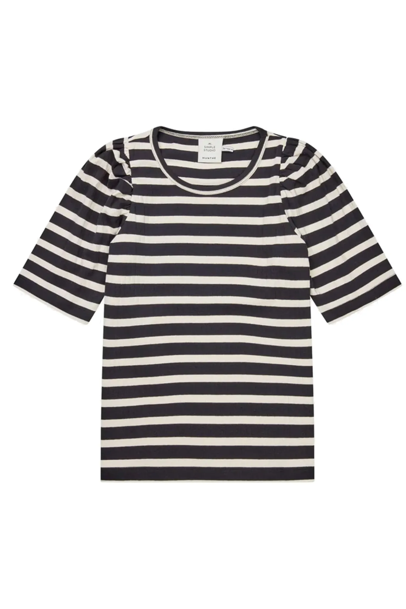 Med 100% økologisk bomuld og en elegant stribet sort farve er denne top fra Munthe et must-have i enhver garderobe. Perfekt til ethvert outfit.