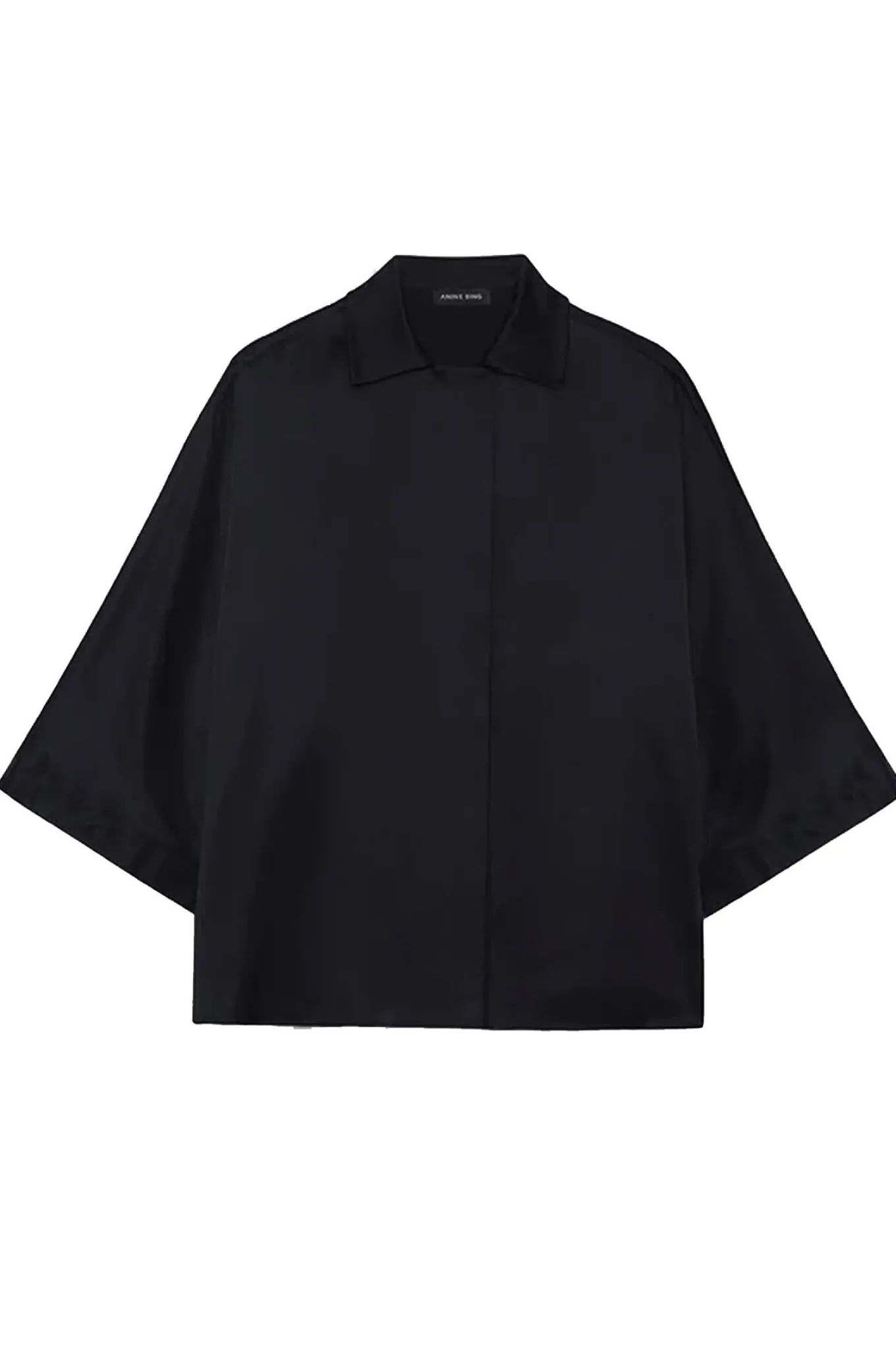 Elegant skjortebluse fra Anine Bing med ½ lange ærmer, skjortekrave i halsen og skjult knaplukning langs fronten.