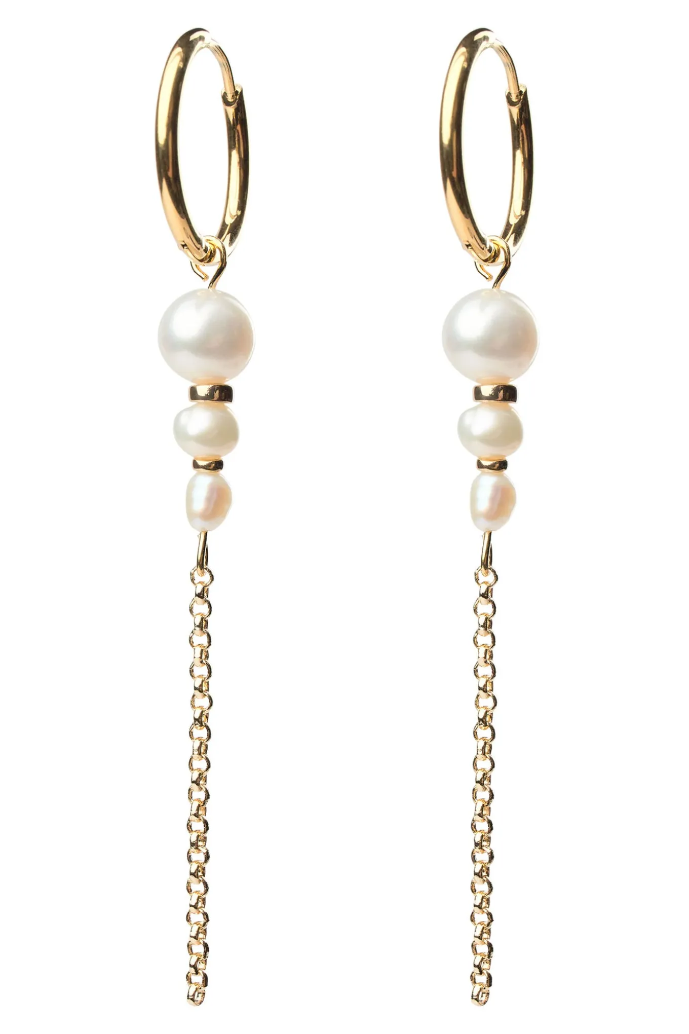 Levering kan blive forlænget med 1-2 dage, hvis varen ikke findes i vores butik lige nu.øreringen består af 16 karat guldbelagt messing. øreringen har 3 hvide ferskvandsperler.
