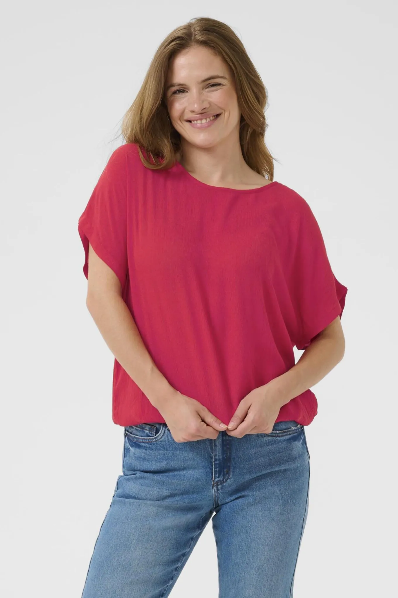 Få et tidløst og elegant look med denne røde bluse fra Kaffe. Den er lavet af 100% viskose fra LENZING™ ECOVERO™ og er perfekt til enhver lejlighed.