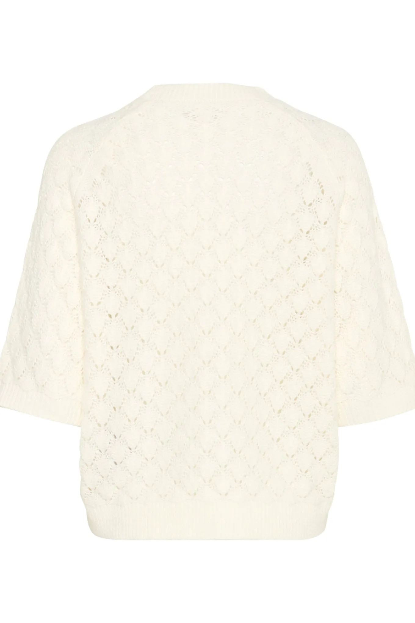 Skab et stilfuldt look med denne striktrøje i farven Chalk fra Kaffe. Den er lavet af 50% bomuld og 50% akryl, hvilket giver den en behagelig pasform. Perfekt til enhver anledning.