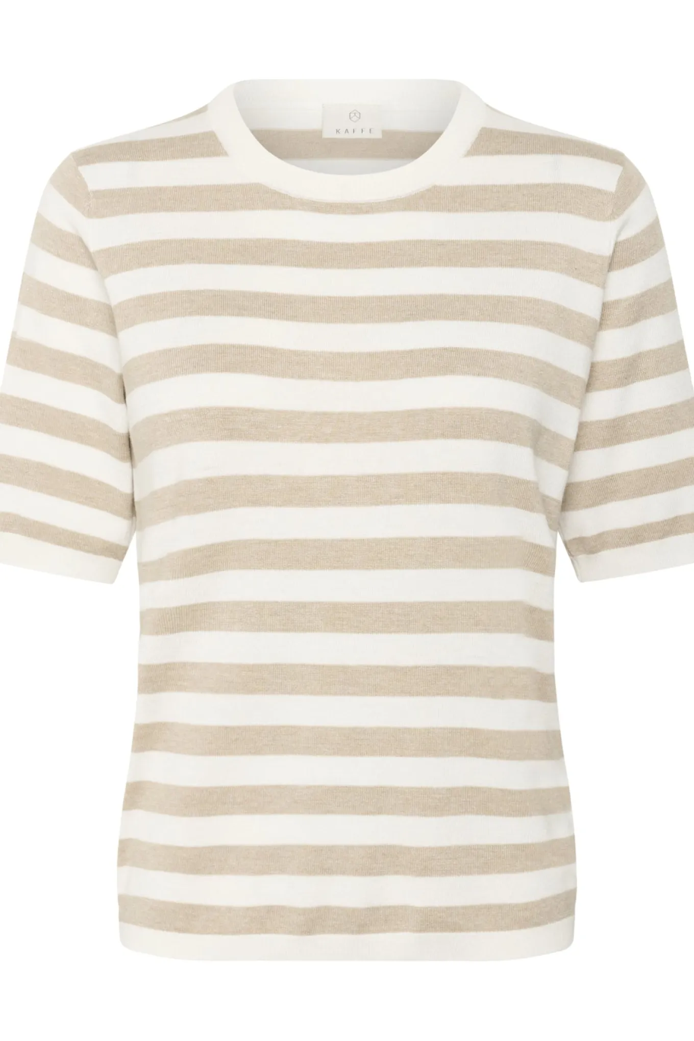 Få et casual og elegant look med denne strik fra Kaffe. Den er i farven Chalk/Feather Grey Mel. Stripe og er lavet af 80% viskose og 20% nylon. Perfekt til enhver lejlighed.