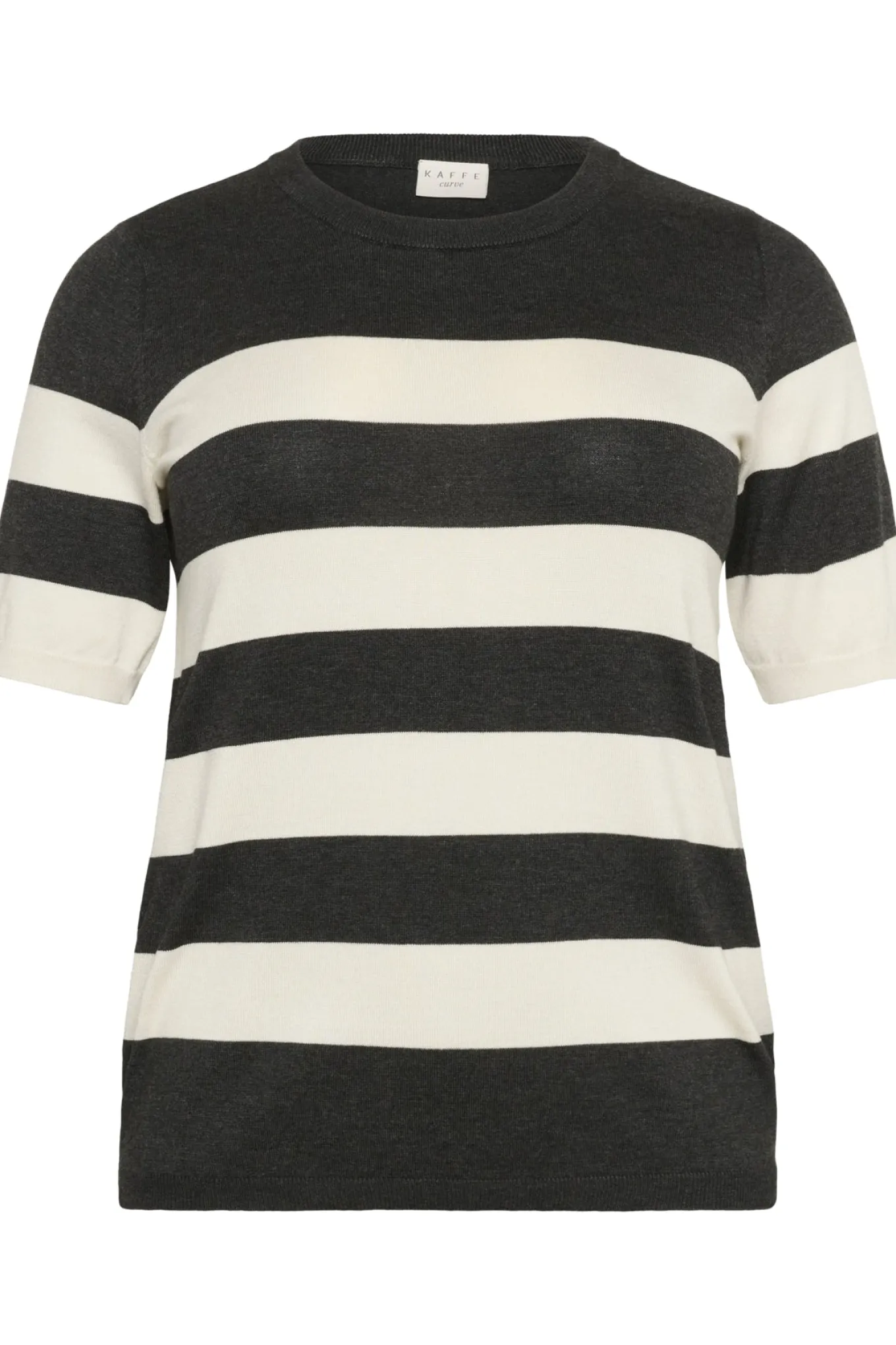 Skab et elegant og tidløst look med denne striktrøje fra Kaffe. Den har brede striber i DGM/turtledove og er lavet af blød viscose og nylon. Perfekt til enhver anledning.