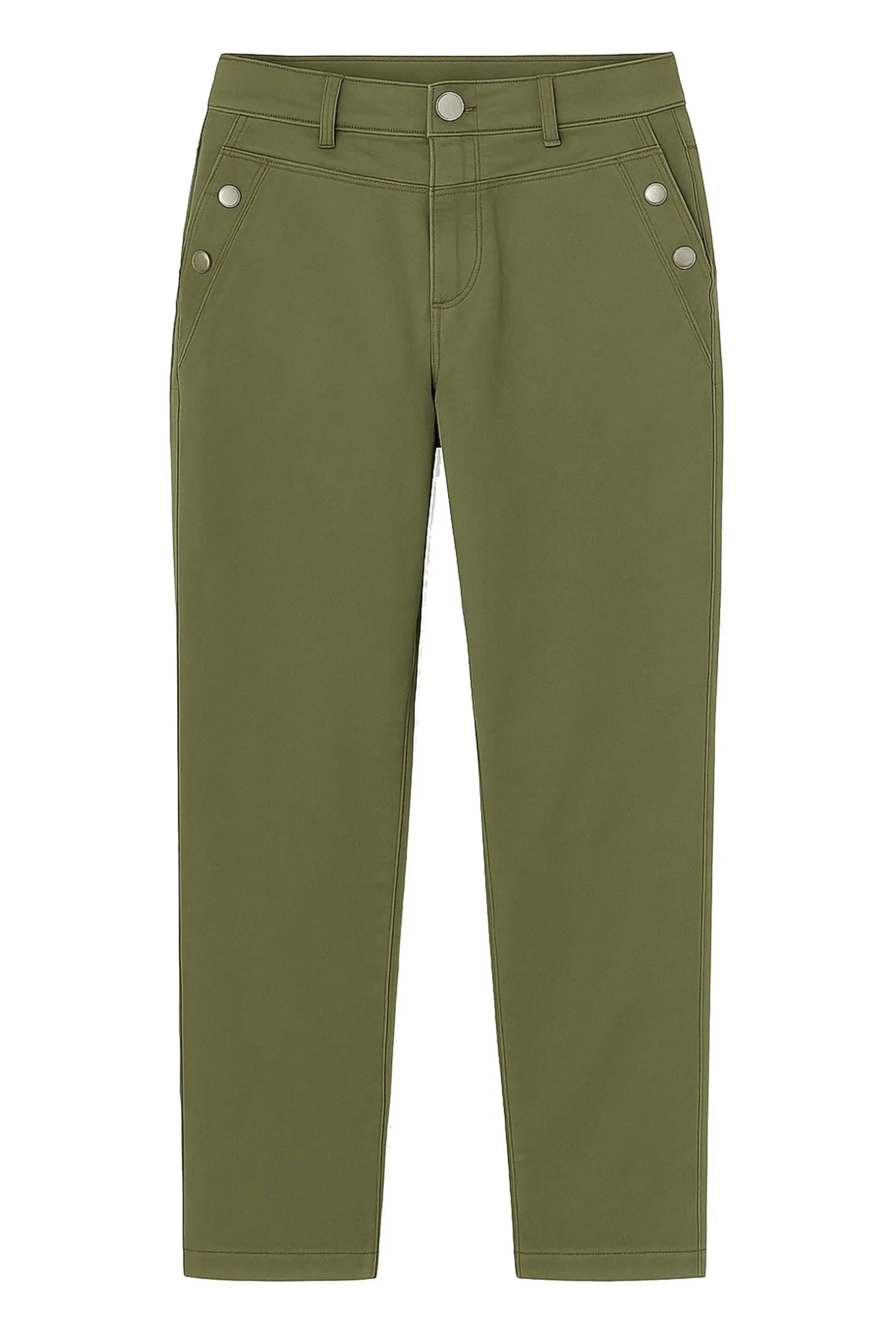 Skab et trendy og stilfuldt look med disse bukser i en smuk dusty khaki farve fra 2-BIZ. De er lavet af en blanding af bomuld, polyester og elastan, hvilket sikrer en behagelig pasform hele dagen. Perfekt til enhver anledning!