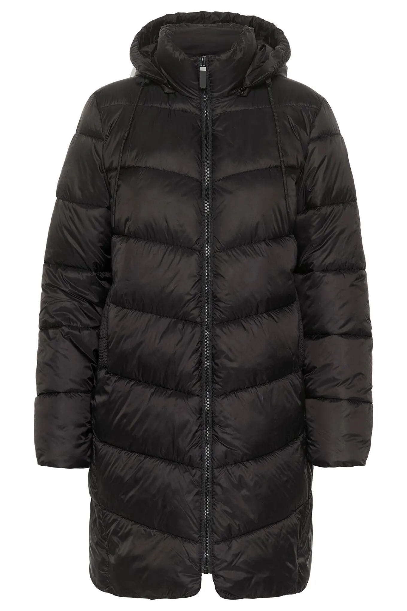 OBS! Fjernlager. Levering kan blive forlænget med 2-3 dage, hvis varen ikke findes i vores butik lige nu.Cool quiltet jakke fra Kaffe med lange ærmer, høj hals og justerbar hætte, lommer i siderne og lynlåslukning langs fronten.