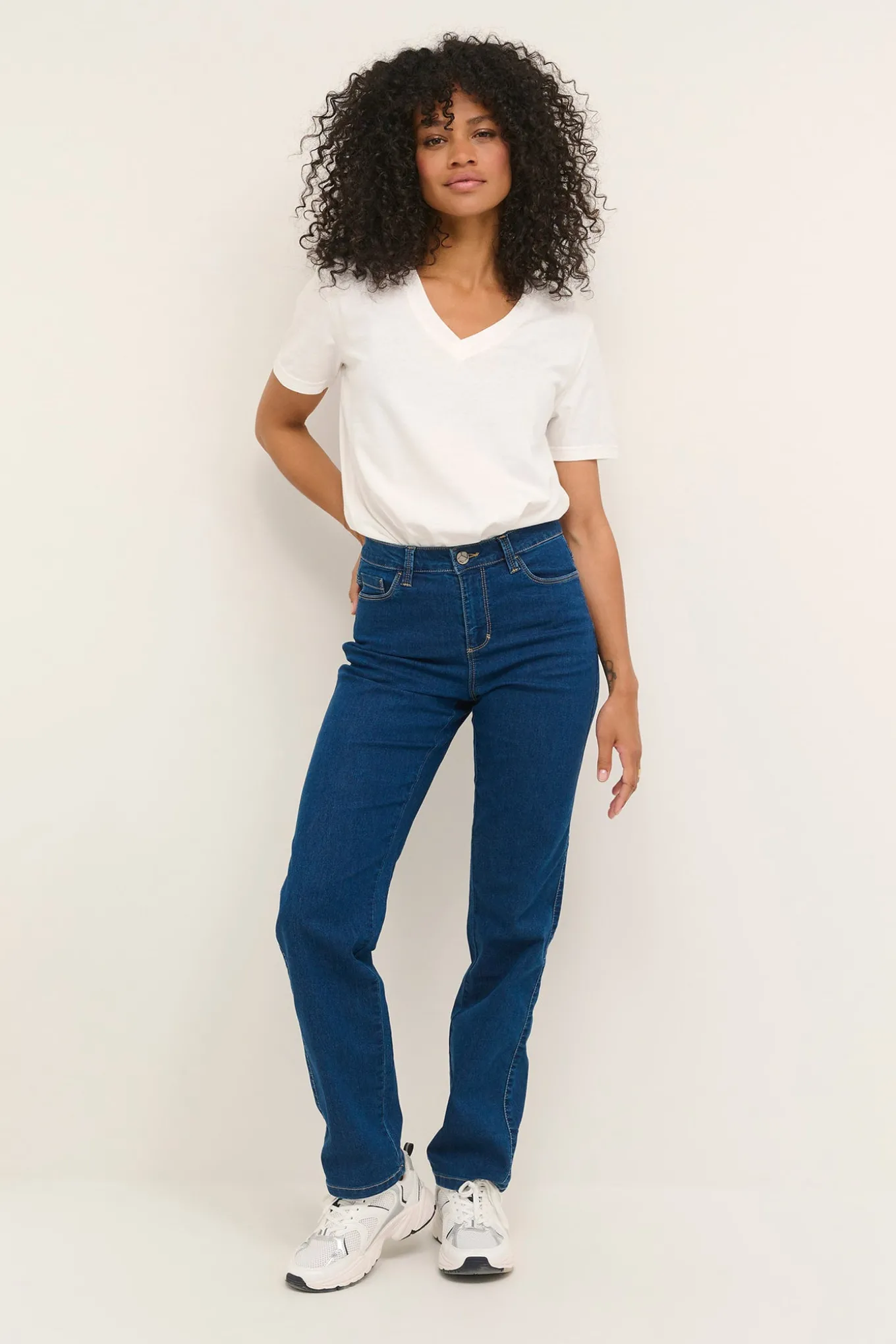 OBS! Fjernlager. Levering kan blive forlænget med 2-3 dage, hvis varen ikke findes i vores butik lige nu.Skønne jeans fra Kaffe med et straight-leg snit, en regulær pasform og en dejlig bomuldskvalitet.