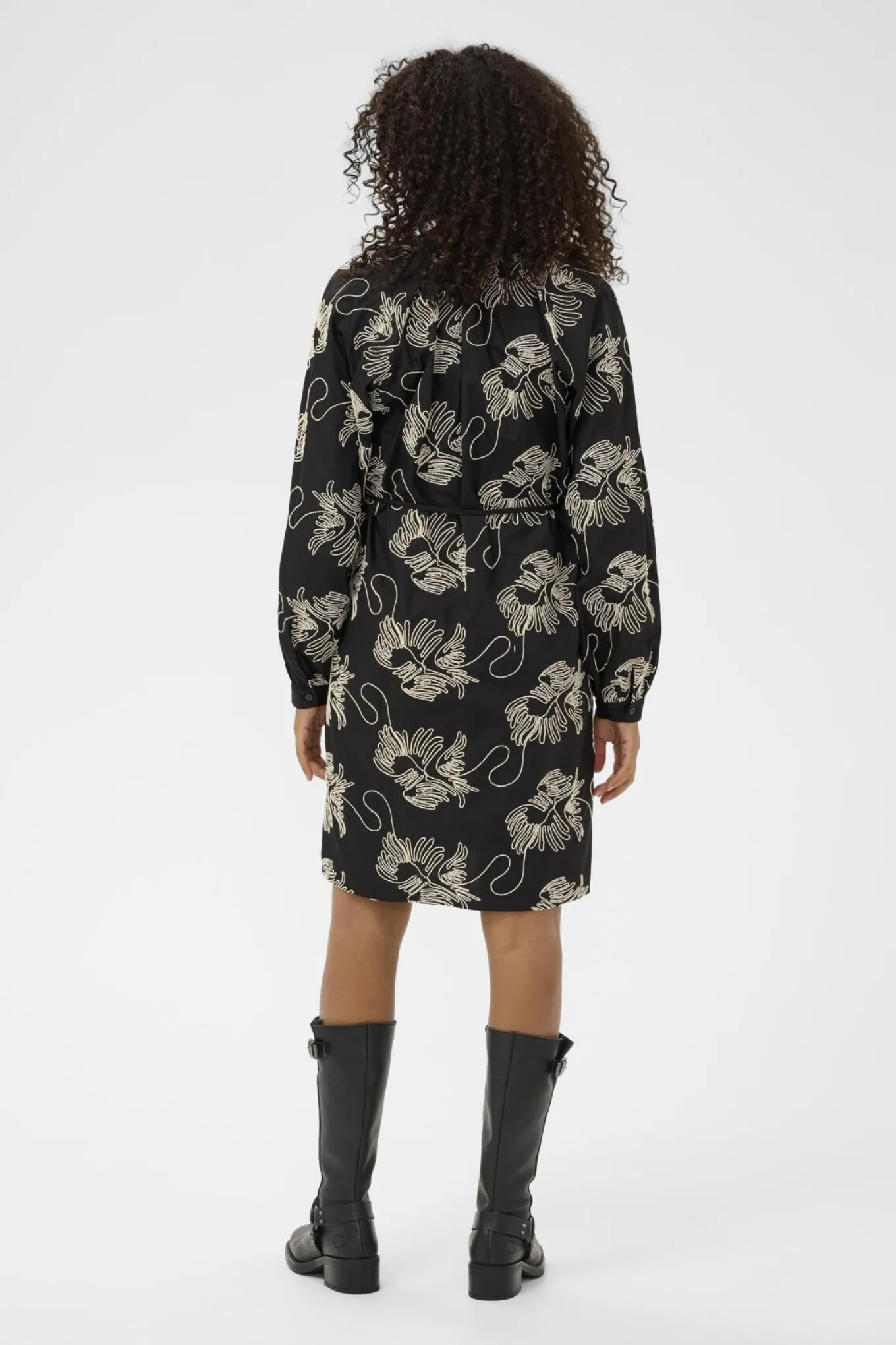 Denne smukke kjole fra Kaffe i sort med broderet mønster er lavet af blødt polyester og bomuld. Perfekt til både hverdag og fest.