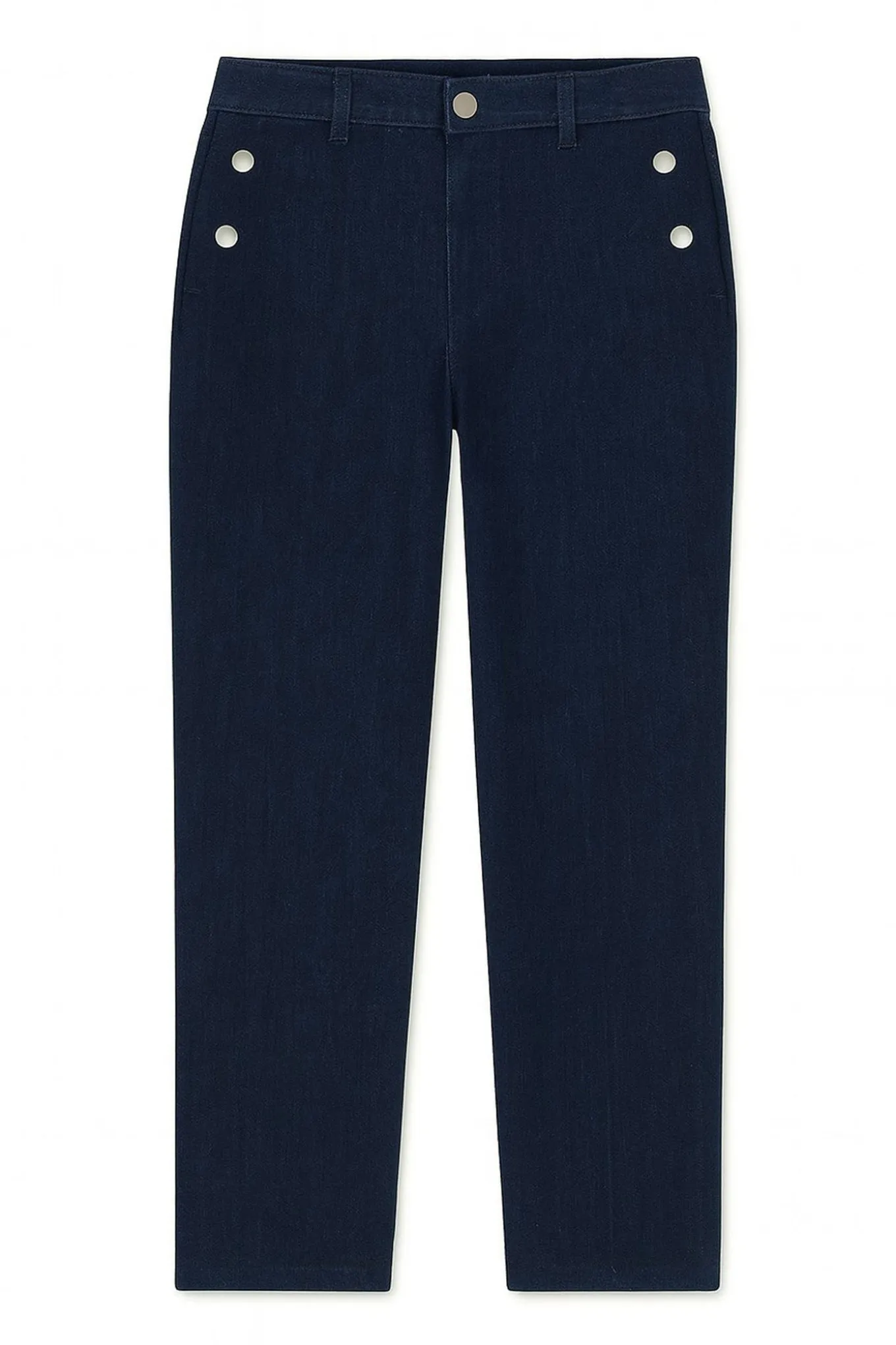Smarte og velsiddende bukser fra 2-Biz. Buksen har en højtalje, og er lavet i et meget strækbart materiale, så de sidder fantastisk. Der er en fin knap detalje ved lommerne, og modellen er ankellang. Alletiders basis buks, sæt den sammen med en farverig bluse og en blazer.