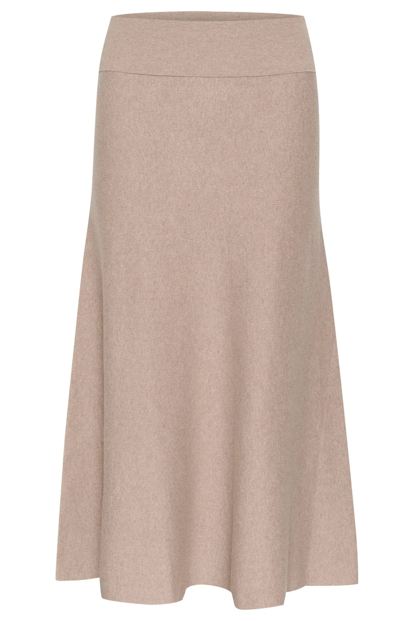 OBS! Fjernlager. Levering kan blive forlænget med 2-3 dage, hvis varen ikke findes i vores butik lige nu.Blød og lækker strik fra InWear med en bred kant i taljen og lette flæseeffekter i skørtet.