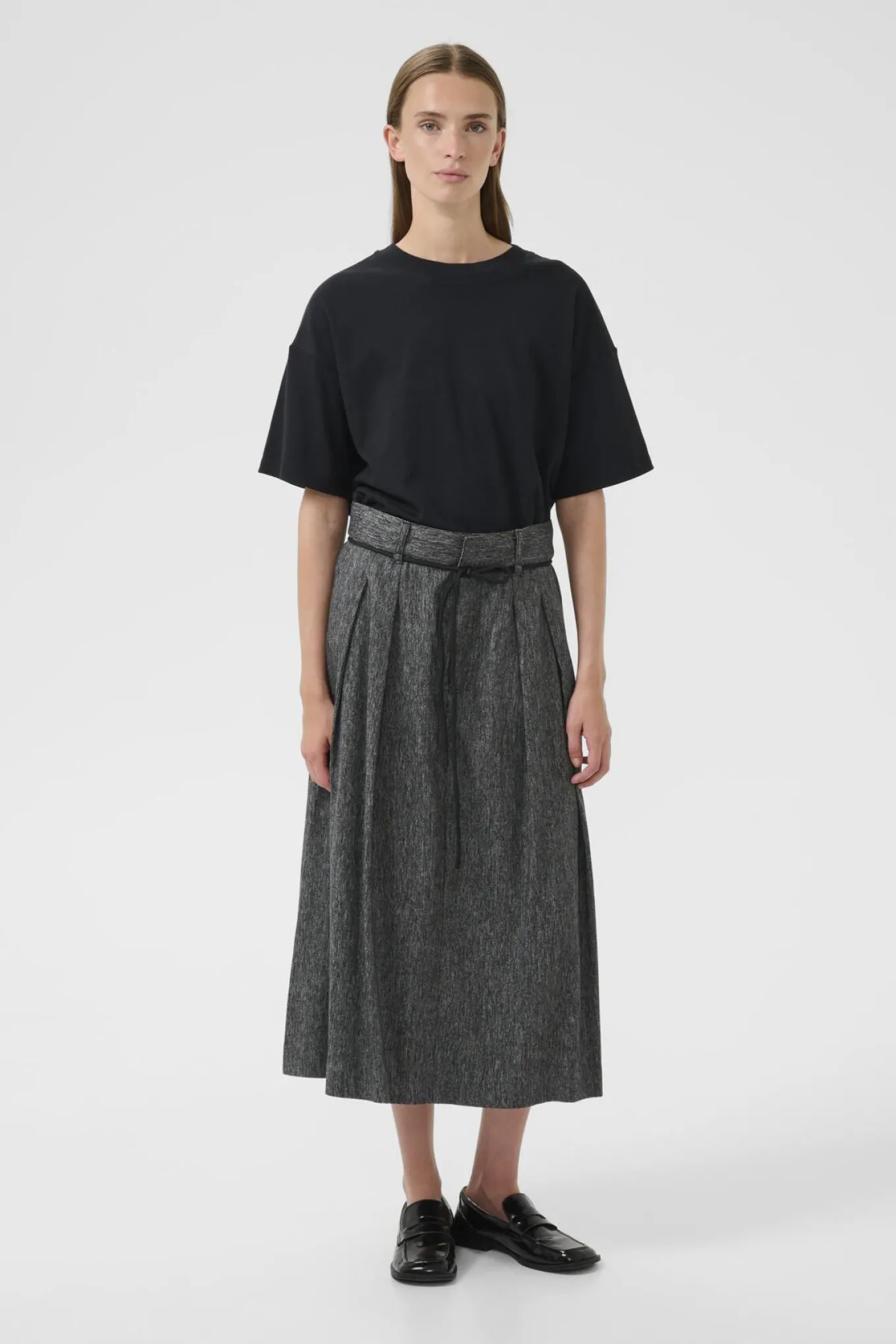 OBS! Fjernlager. Levering kan blive forlænget med 2-3 dage, hvis varen ikke findes i vores butik lige nu.Klassisk nederdel fra Karen By Simonsen med en bred kant og bindesnor i taljen, en lækker kvalitet og et elegant udtryk.