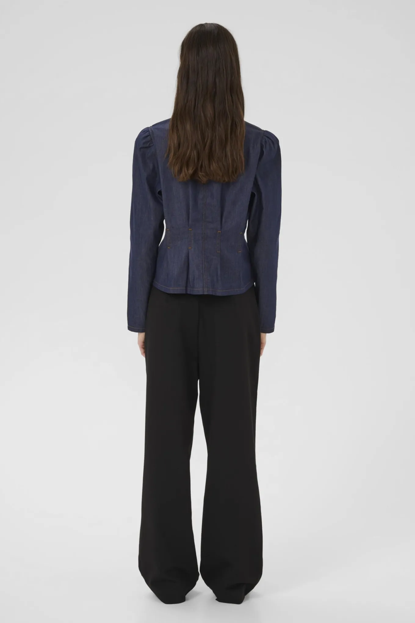 Få et stilfuldt look med denne bluse fra Karen by Simonsen i en smuk ombreblå farve. Blusen er lavet af en blanding af bomuld, polyester og elastan, hvilket giver den en lækker og behagelig pasform. Perfekt til enhver lejlighed.
