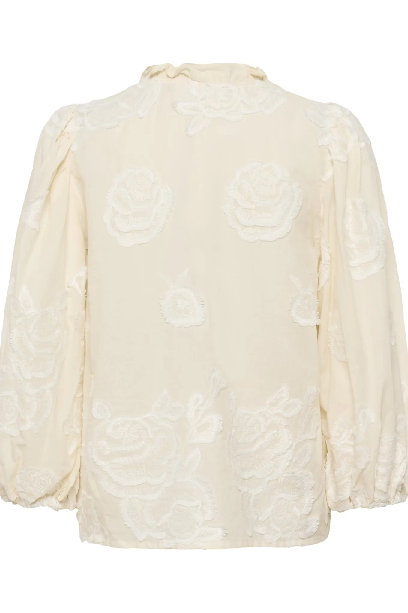 Opfrisk din garderobe med denne elegante bluse fra Karen by Simonsen. Den er i en smuk egret farve og er lavet af 90% bomuld og 10% polyester.