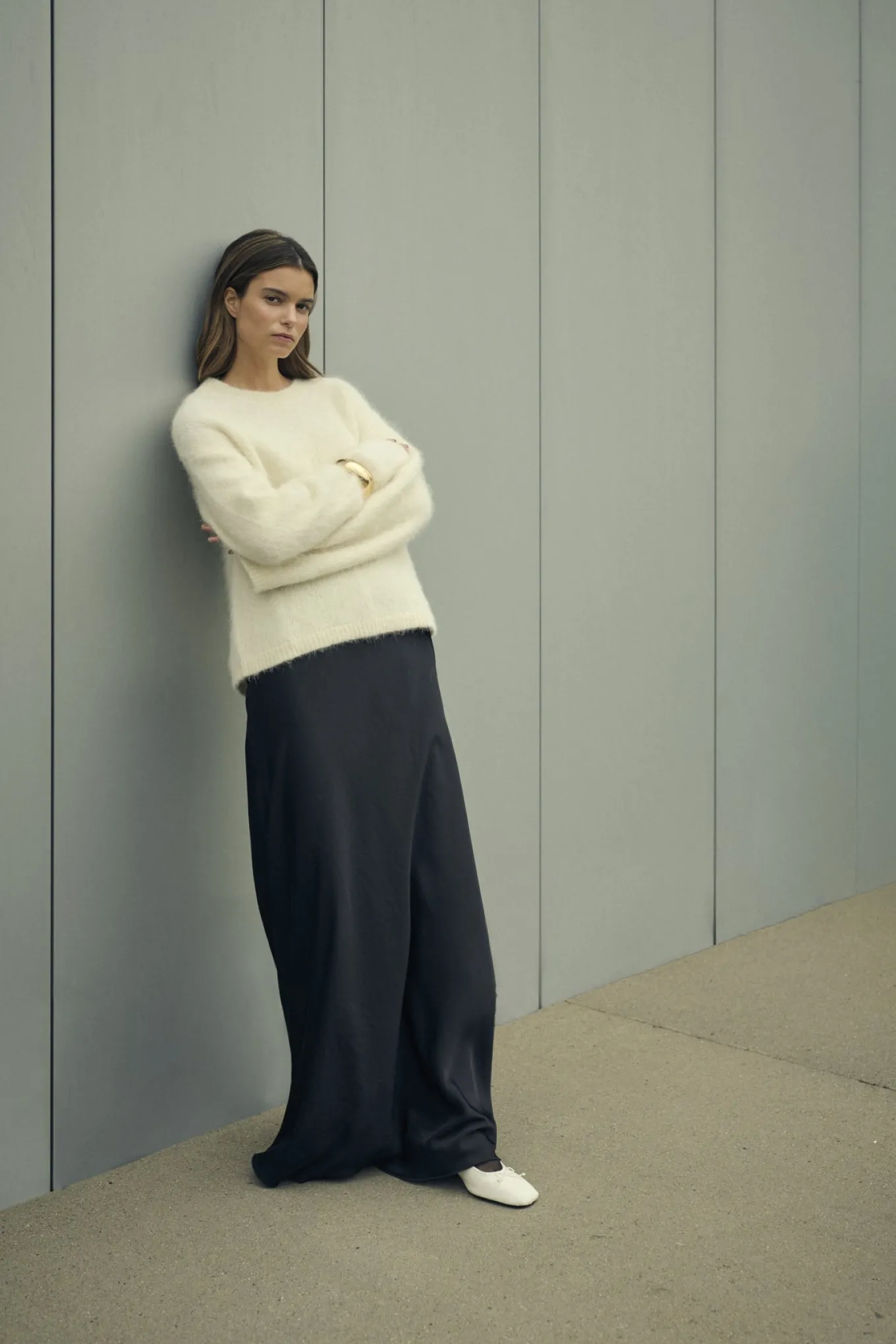 OBS! Fjernlager. Levering kan blive forlænget med 2-3 dage, hvis varen ikke findes i vores butik lige nu.Smuk nederdel fra Karen By Simonsen med elastikkant i taljen.