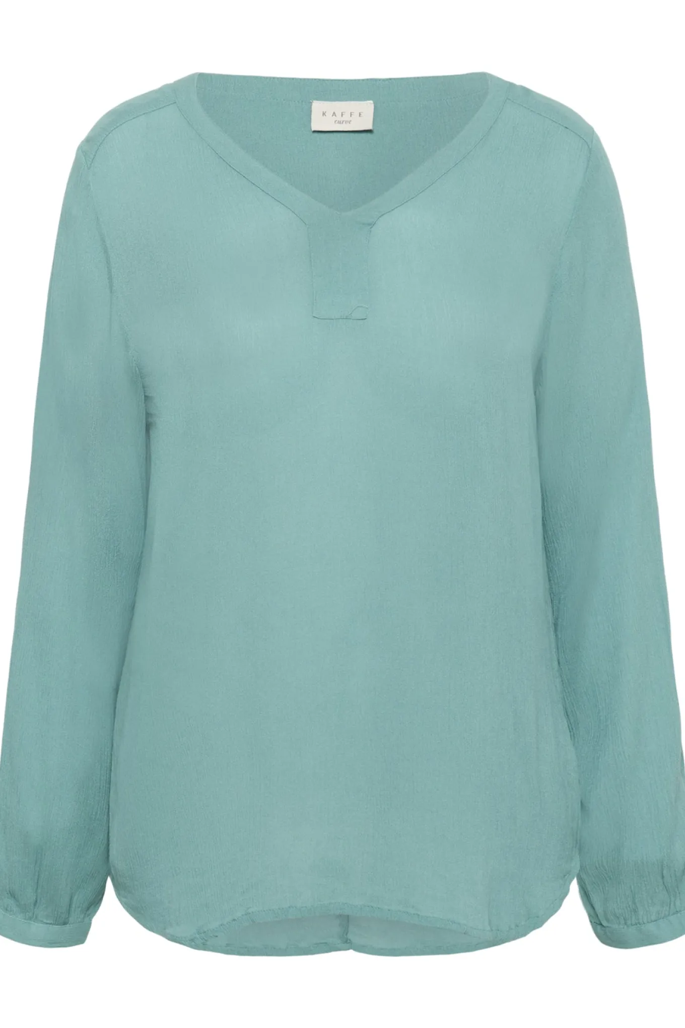 Stilfuld bluse i en smuk teal farve, lavet af 100% viskose fra Kaffe Curve. Perfekt til enhver lejlighed og med et bæredygtigt touch af LENZING™ ECOVERO™ materiale.