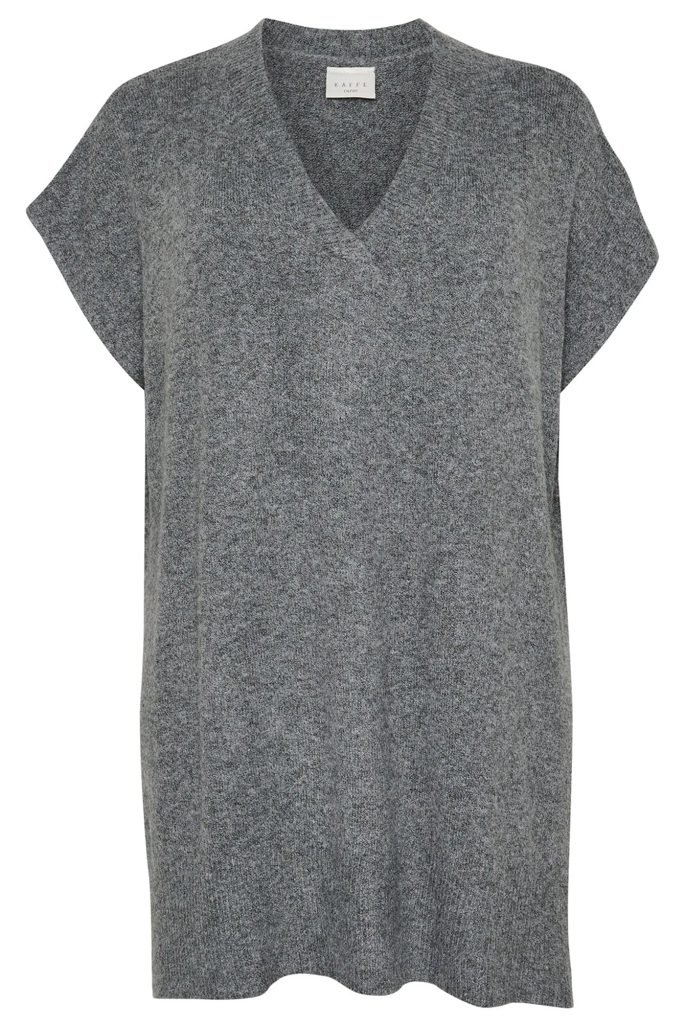 OBS! Fjernlager. Levering kan blive forlænget med 2-3 dage, hvis varen ikke findes i vores butik lige nu.Lækker strikket poncho fra Kaffe Curve med små ærmer, v-udskæring i halsen og slidser i siderne.