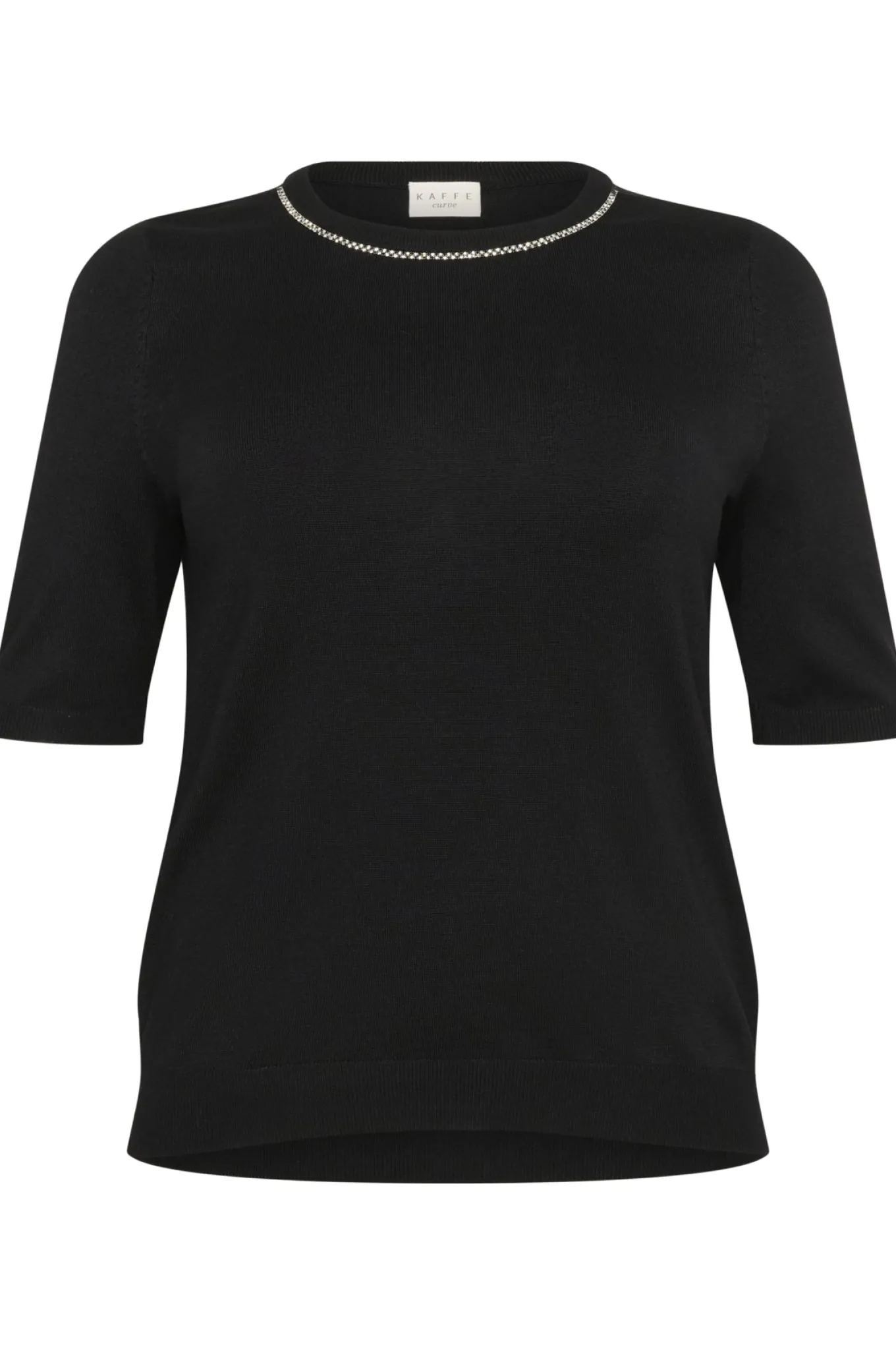OBS! Fjernlager. Levering kan blive forlænget med 2-3 dage, hvis varen ikke findes i vores butik lige nu.Sød strik fra Kaffe Curve med ½ lange ærmer, rund hals og en lækker blød kvalitet.
