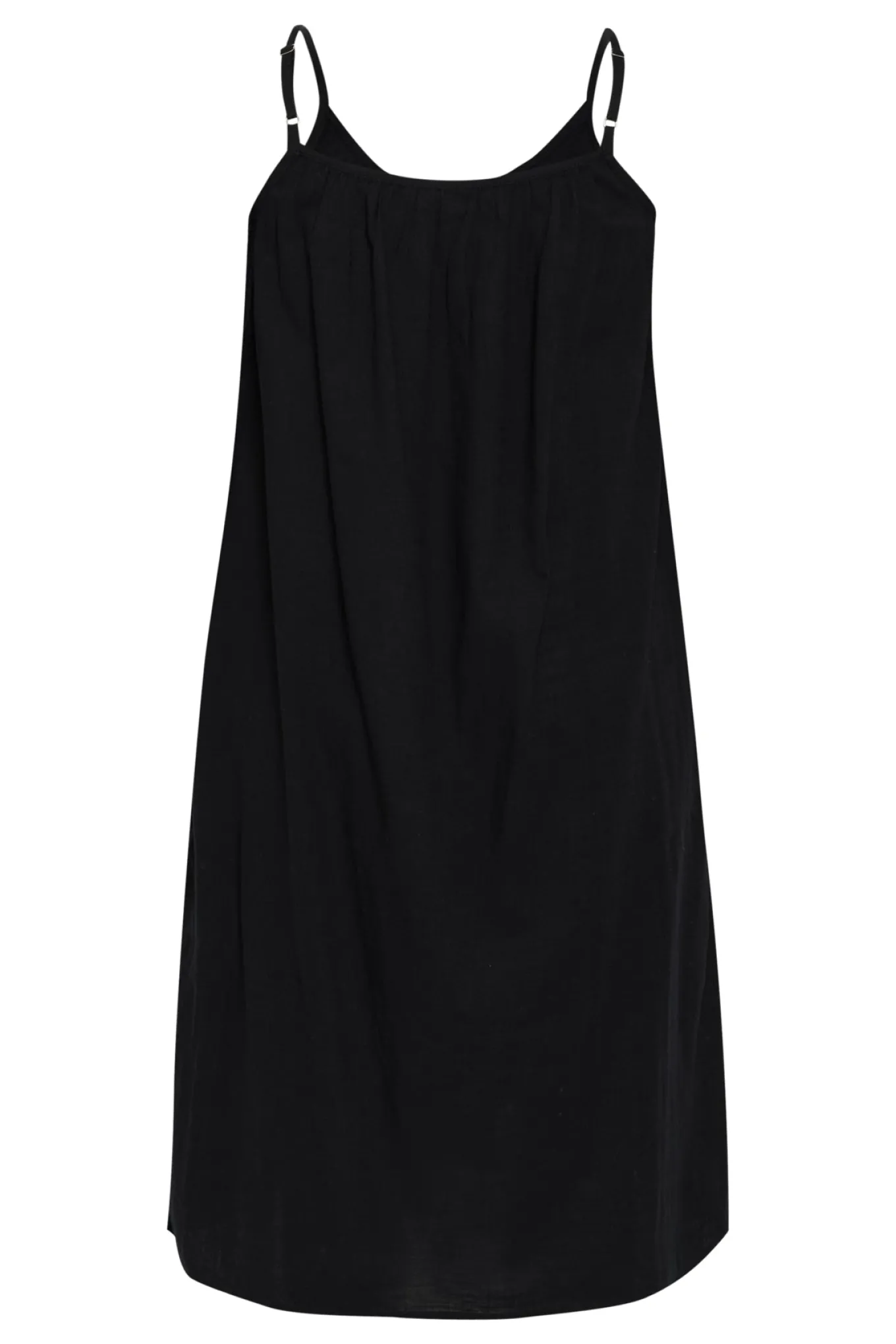 OBS! Fjernlager. Levering kan blive forlænget med 1-2 dage, hvis varen ikke findes i vores butik lige nu.Enkel kjole fra Kaffe Curve med smalle justerbare skulderstropper, lommer i siderne og en afslappet silhuet.