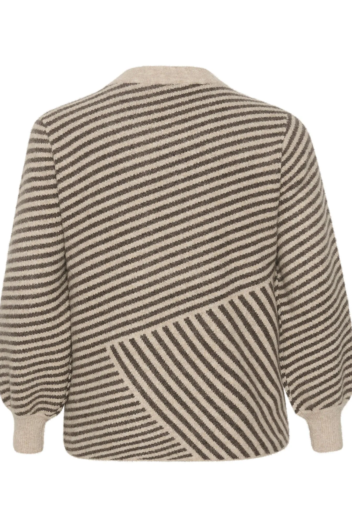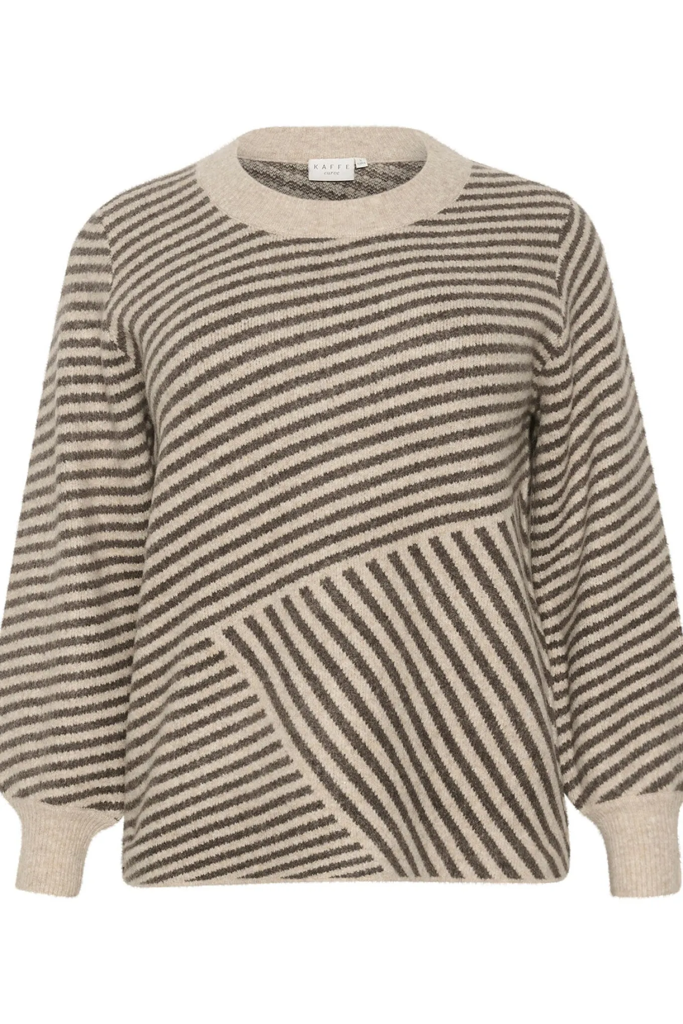 OBS! Fjernlager. Levering kan blive forlænget med 2-3 dage, hvis varen ikke findes i vores butik lige nu.Blød og lækker strik fra Kaffe Curve med lange pufærmer, tætsiddende ribmanchetter og rund hals.