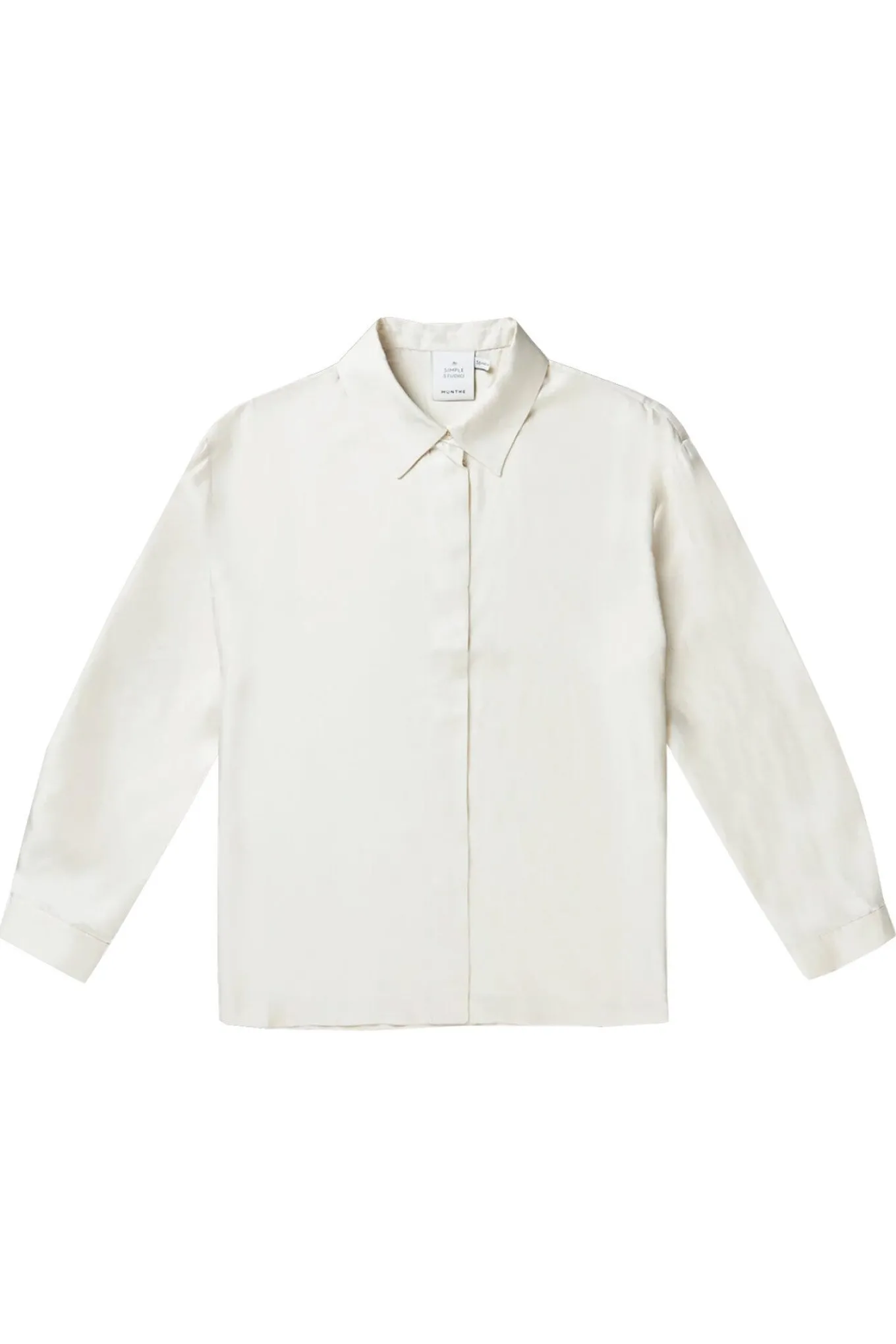 OBS! Fjernlager. Levering kan blive forlænget med 2-3 dage, hvis varen ikke findes i vores butik lige nu.Elegant, klassisk skjorte fra Munthe lavet i 100% silke. Skjorten har lange ærmer med korte manchetter og en almindelig krave.