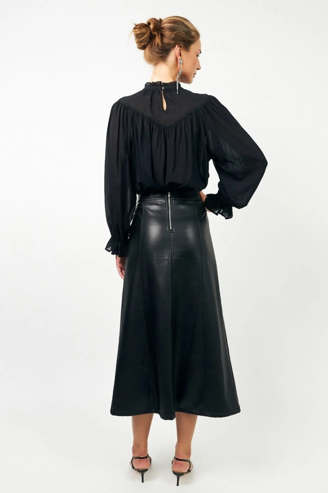 Skab et elegant og tidløst look med denne sorte nederdel fra Lollys Laundry. Nederdelen er lavet af et blødt mix af polyurethane og viskose og har et behageligt bomuldsfoer. Perfekt til enhver lejlighed.
