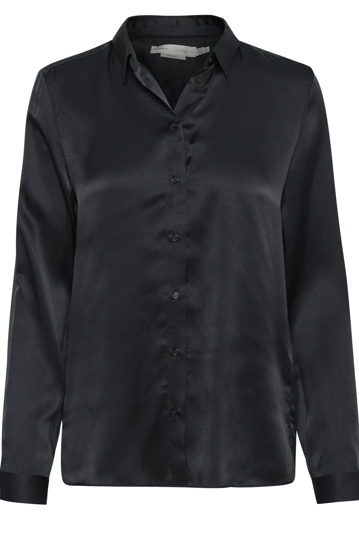 OBS! Fjernlager. Levering kan blive forlænget med 2-3 dage, hvis varen ikke findes i vores butik lige nu.Elegant silkeskjorte fra InWear med lange ærmer, en lille krave i halsen og knaplukning langs fronten.