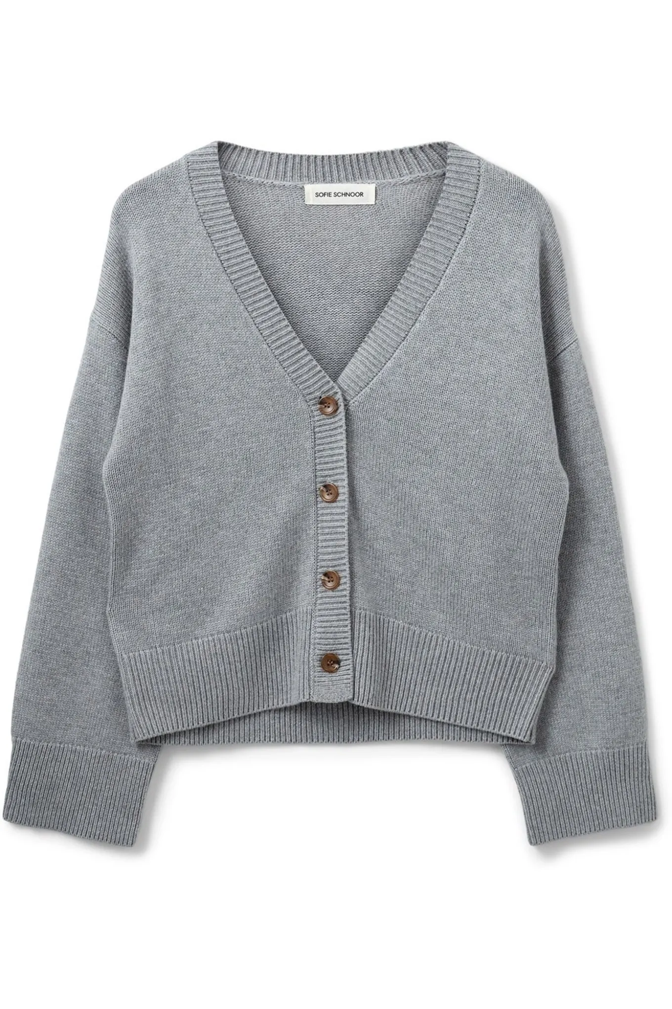 Denne smukke cardigan fra Sofie Schnoor er den perfekte tilføjelse til din garderobe. Den er lavet af en blanding af nylon, viskose og uld i en flot gråmel farve. Tilgængelig i alle størrelser. Fra Sofie Schnoor Woman.