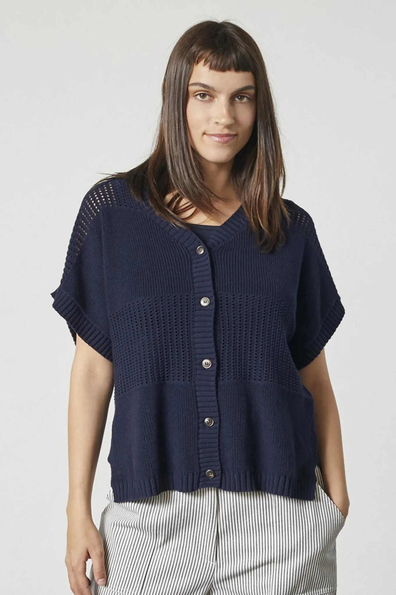 Opdater dit garderobe med denne alsidige cardigan fra LIND. Den er lavet af 100% bomuld i en flot navy blå farve, perfekt til enhver lejlighed.