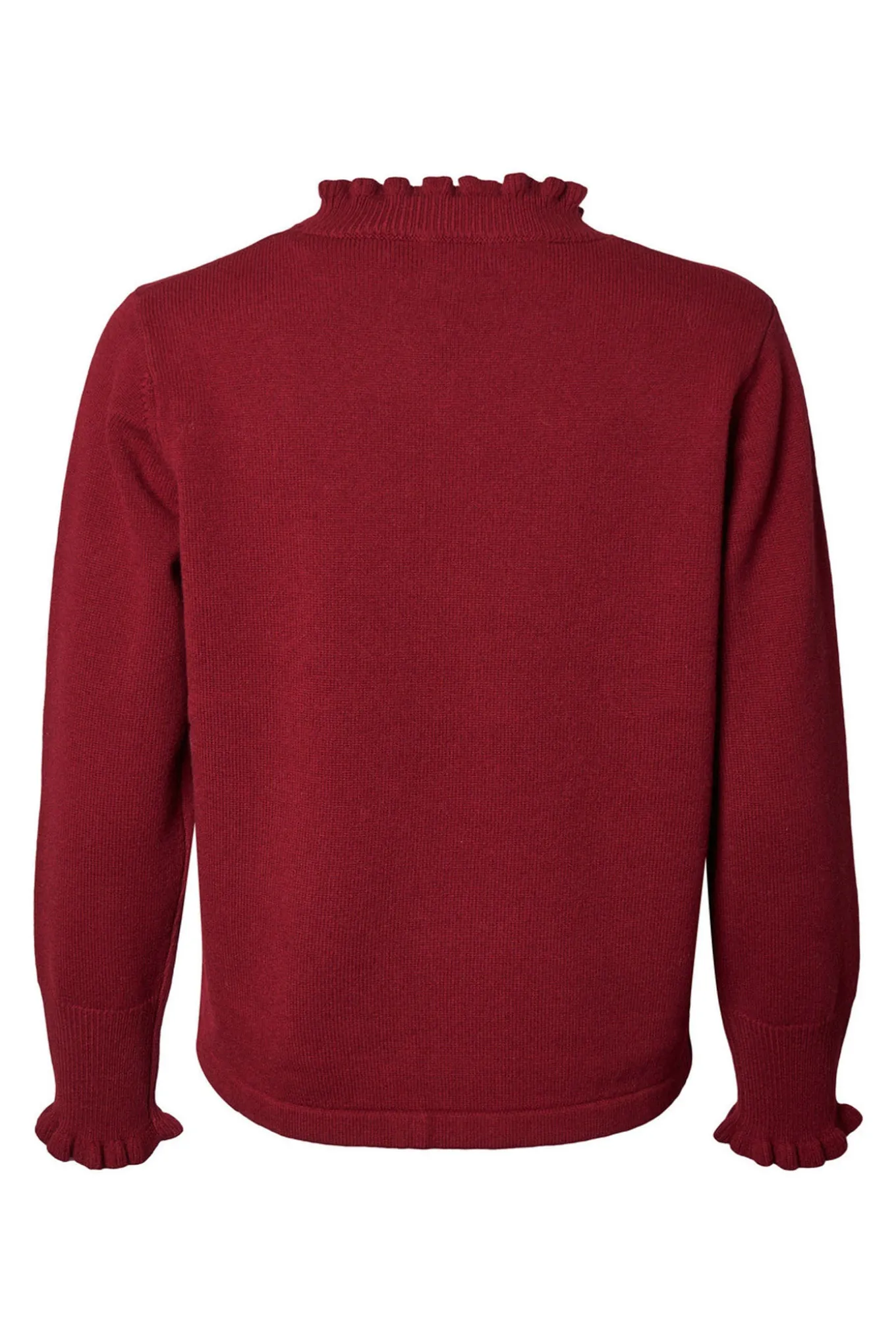 Bring farve og varme til din garderobe med denne striktrøje fra LIND. Den er lavet af 100% merinould og har en smuk rubinrød farve.