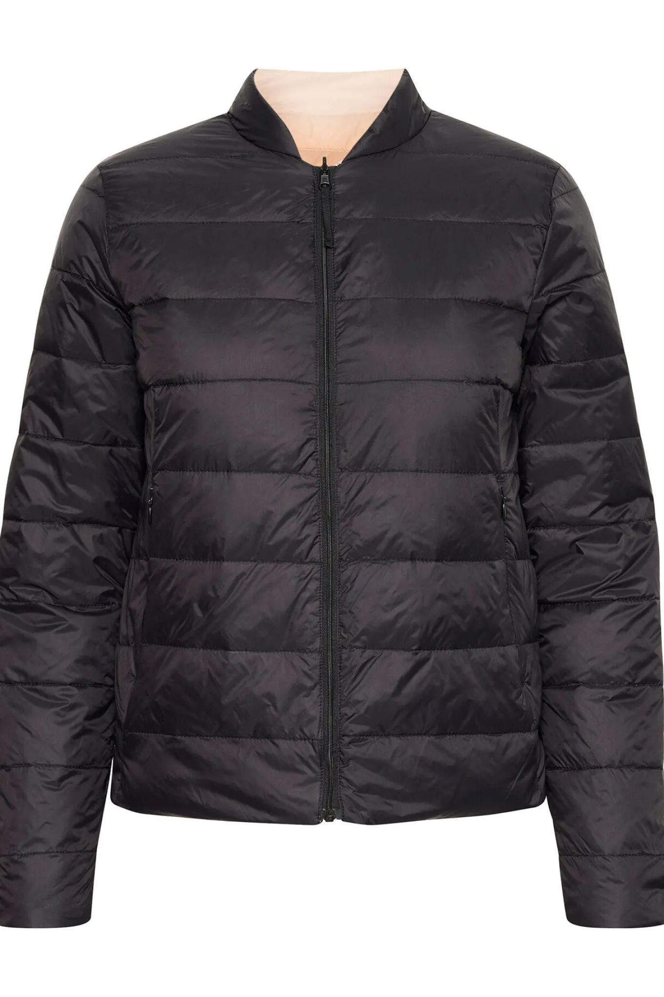 OBS! Fjernlager. Levering kan blive forlænget med 2-3 dage, hvis varen ikke findes i vores butik lige nu.Smarte vendbar jakke fra InWear med lange ærmer, en lille kant i halsen og et fint quiltet udtryk.Jakken har også lommer i siderne og lynlåslukning langs fronten.