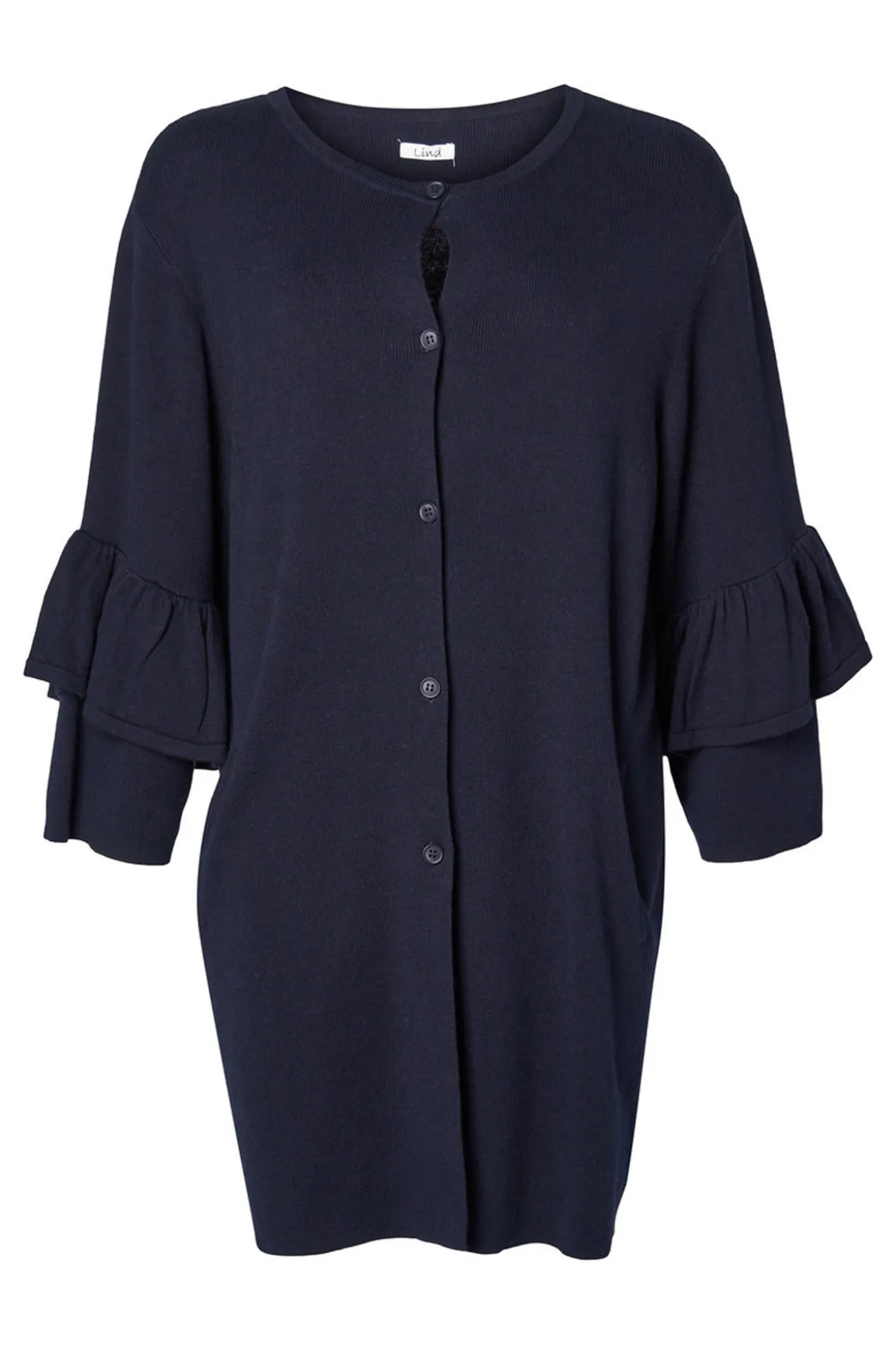 Opdater din garderobe med denne klassiske knit cardigan fra LIND. Den er lavet af 95% bomuld og 5% cashmere i en smuk navy blue farve. Perfekt til enhver lejlighed.