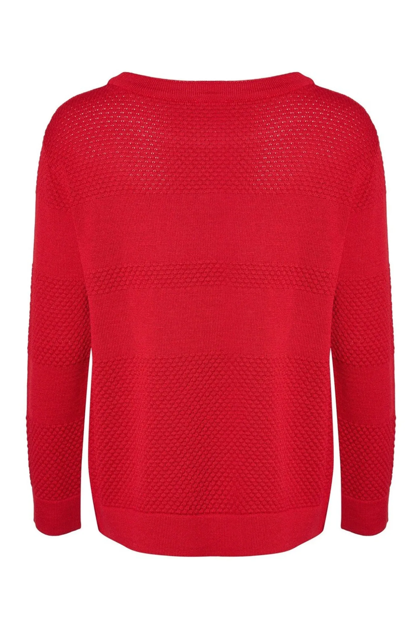 Skab et varmt og stilfuldt udtryk med denne striktrøje fra LIND. Den er lavet af 50% uld og 50% akryl i en smuk Norwegian red farve.