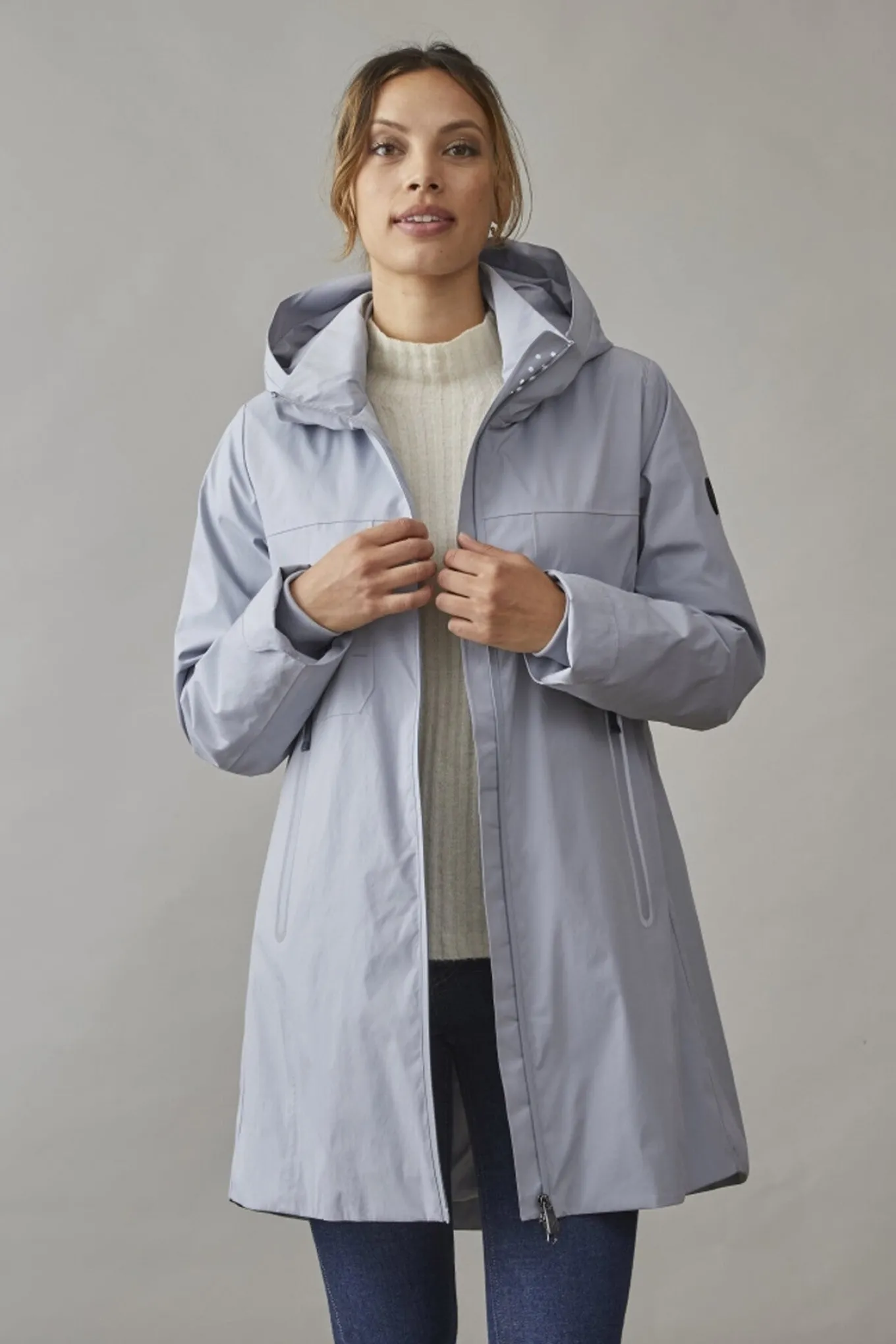 OBS! Fjernlager. Levering kan blive forlænget med 2-3 dage, hvis varen ikke findes i vores butik lige nu.Flot enkel jakke fra Junge med lange ærmer, hætte og en feminin silhuet.Jakken har også store praktiske lommer, dobbelt lynlås langs fronten og en lækker kvalitet.
