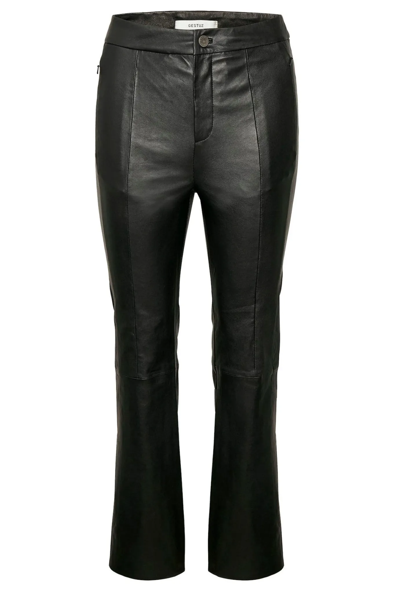 Levering kan blive forlænget med 1-2 dage, hvis varen ikke findes i vores butik lige nu.Super smarte Læder bukser fra Gestuz.