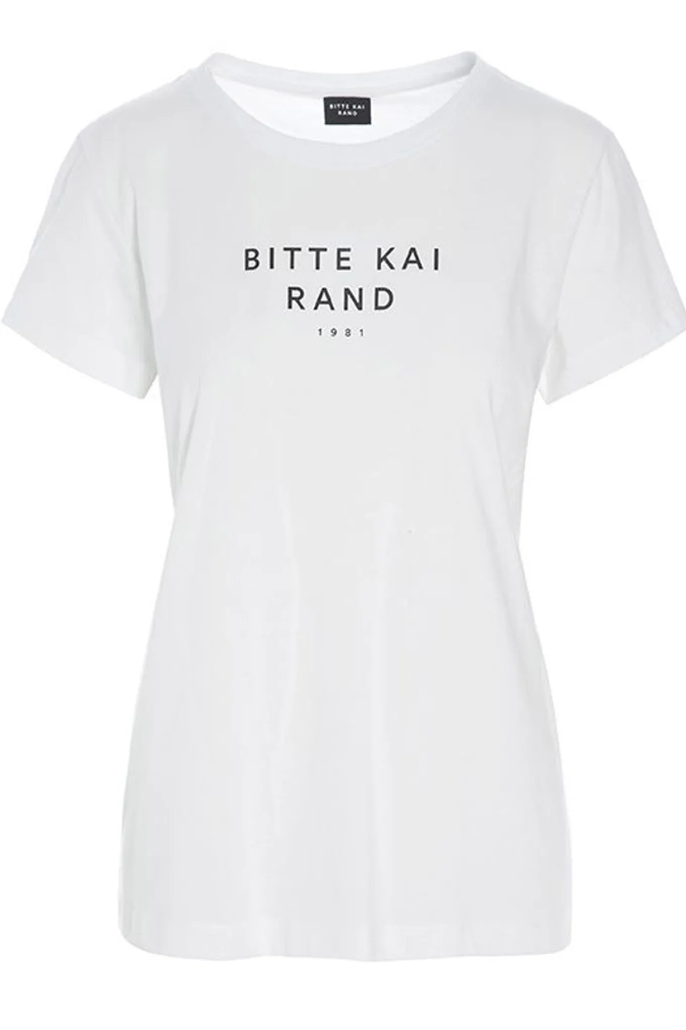 OBS! Fjernlager. Levering kan blive forlænget med 2-3 dage, hvis varen ikke findes i vores butik lige nu.Enkel, kortærmet t-shirt fra Bitte Kai Rand der sidder tæt til kroppen og giver en feminin silhuet. På brystet er printet teksten “BITTE KAI RAND 1981”. T-shirten er lavet af den fine pima bomuld, der udmærker sig ved at være særdeles blød og holde faconen