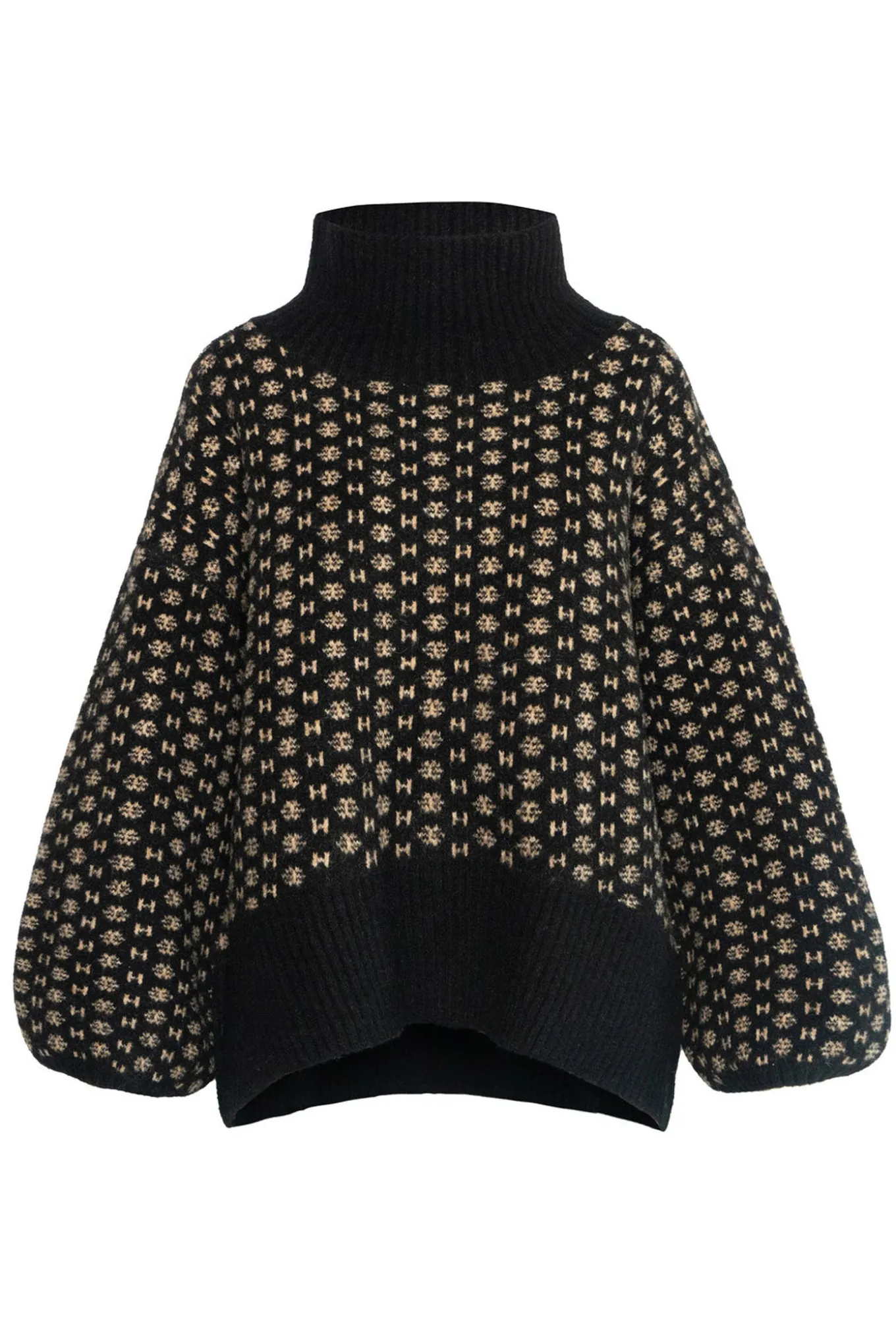 Super lækker strik fra Hést med lange pufærmer, høj hals og en dejlig afslappet silhuet.
