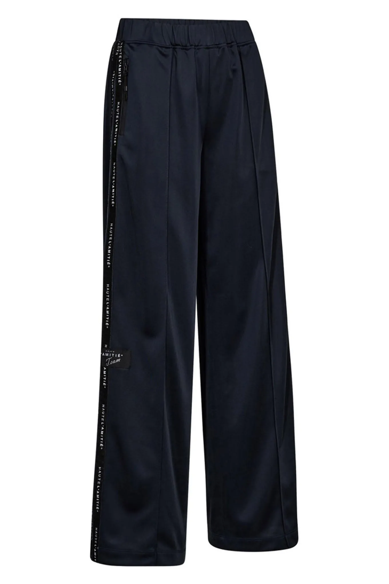 Moderne og stilfulde Logo Tape Track Tall Pant i navy fra Haute L’Amitie. Fremstillet i 100% polyester med et klassisk design-