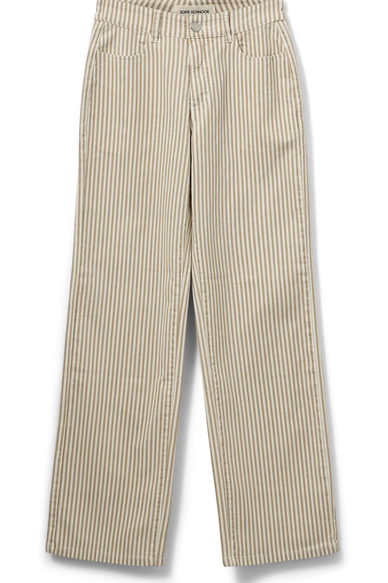 - OBS! Fjernlager. Levering kan blive forlænget med 2-3 dage, hvis varen ikke findes i vores butik lige nu.Smarte bukser fra Sofie Schnoor med vidde i benene, et klassisk stribet mønster og en flot kvalitet.