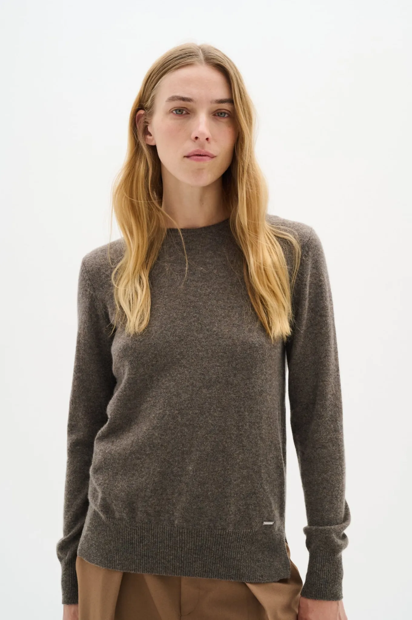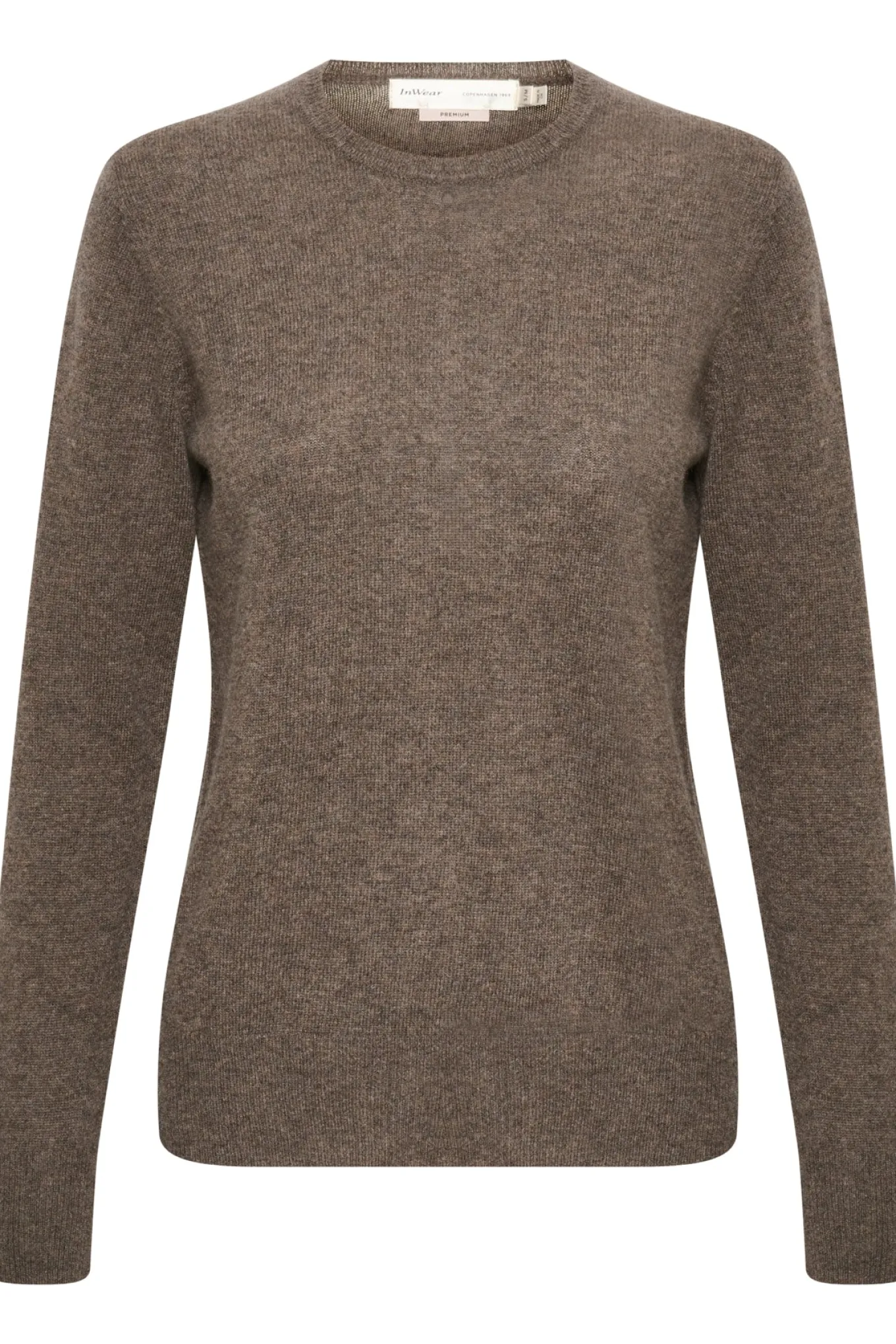 Få et luksuriøst og klassisk look med denne striktrøje fra Inwear. Den er lavet af 100% kashmir og har en smuk brunmeleret farve. Perfekt til enhver lejlighed.