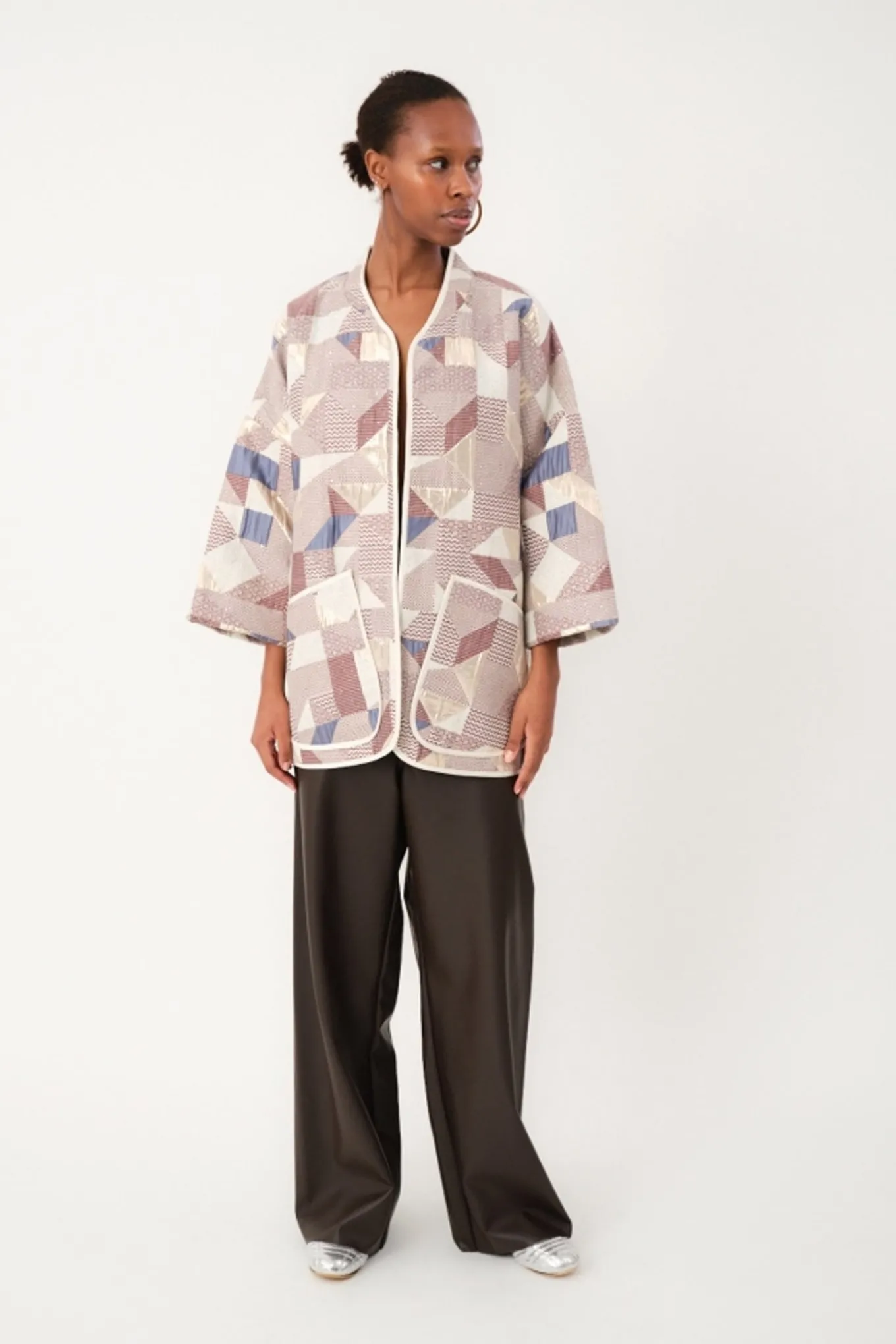 Få et flot og alsidigt look med denne skønne 3/4 kimono fra Lollys Laundry. Den farverige print giver et friskt pust til din garderobe, og det bløde polyester materiale sikrer en behagelig pasform.