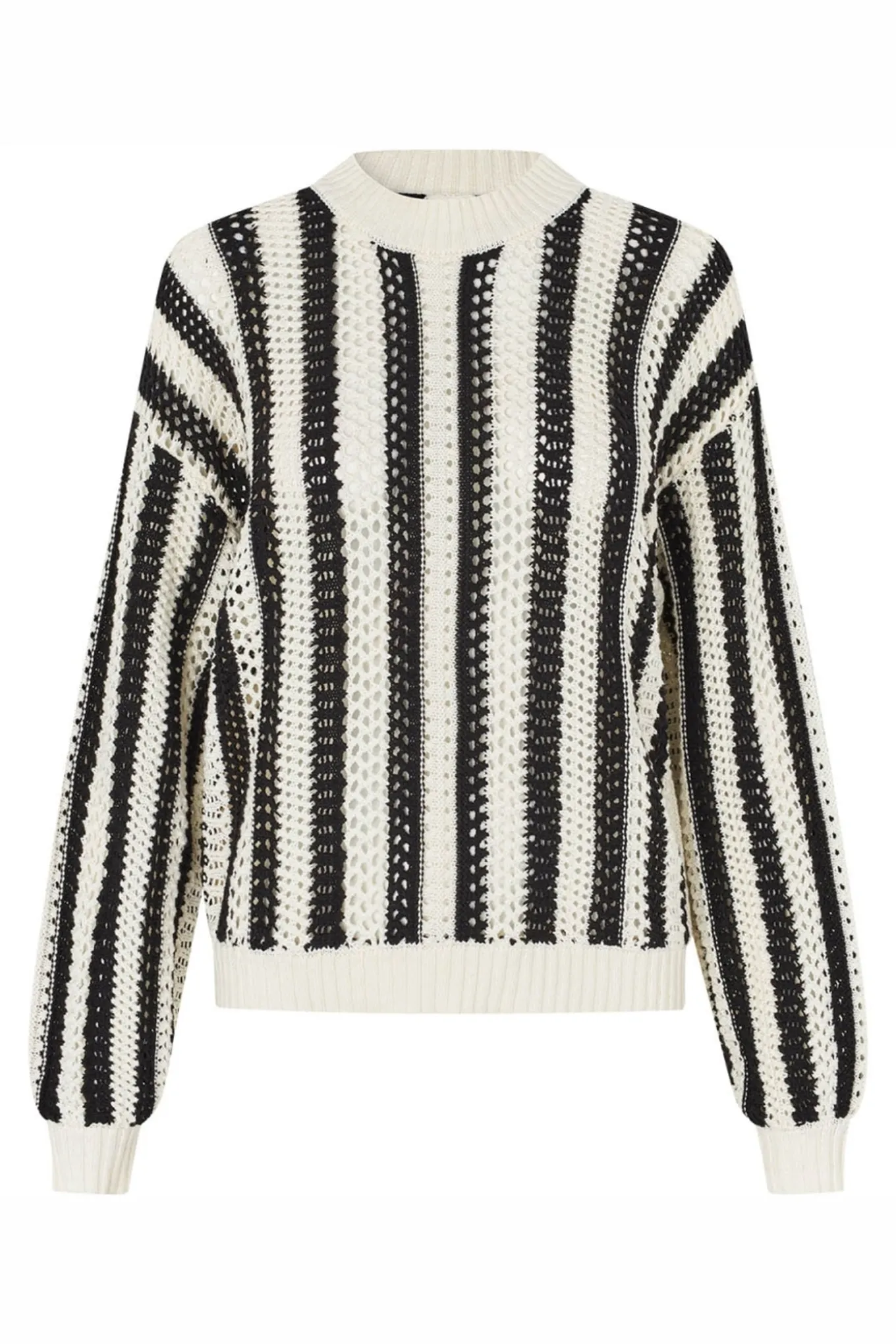 Skab et tidløst og alsidigt look med denne striktrøje i farven 99 Black. Den er lavet af 60% bomuld og 40% akryl og kommer fra det danske mærke Lollys Laundry.