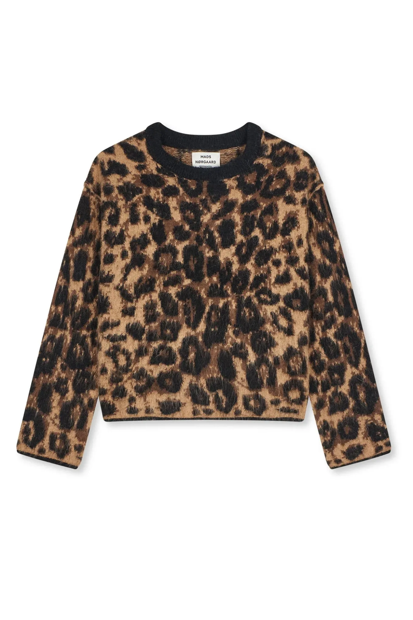 OBS! Fjernlager. Levering kan blive forlænget med 2-3 dage, hvis varen ikke findes i vores butik lige nu.Cool strik fra Mads Nøørgaard med lange ærmer, rund hals og et cool leopardprint.
