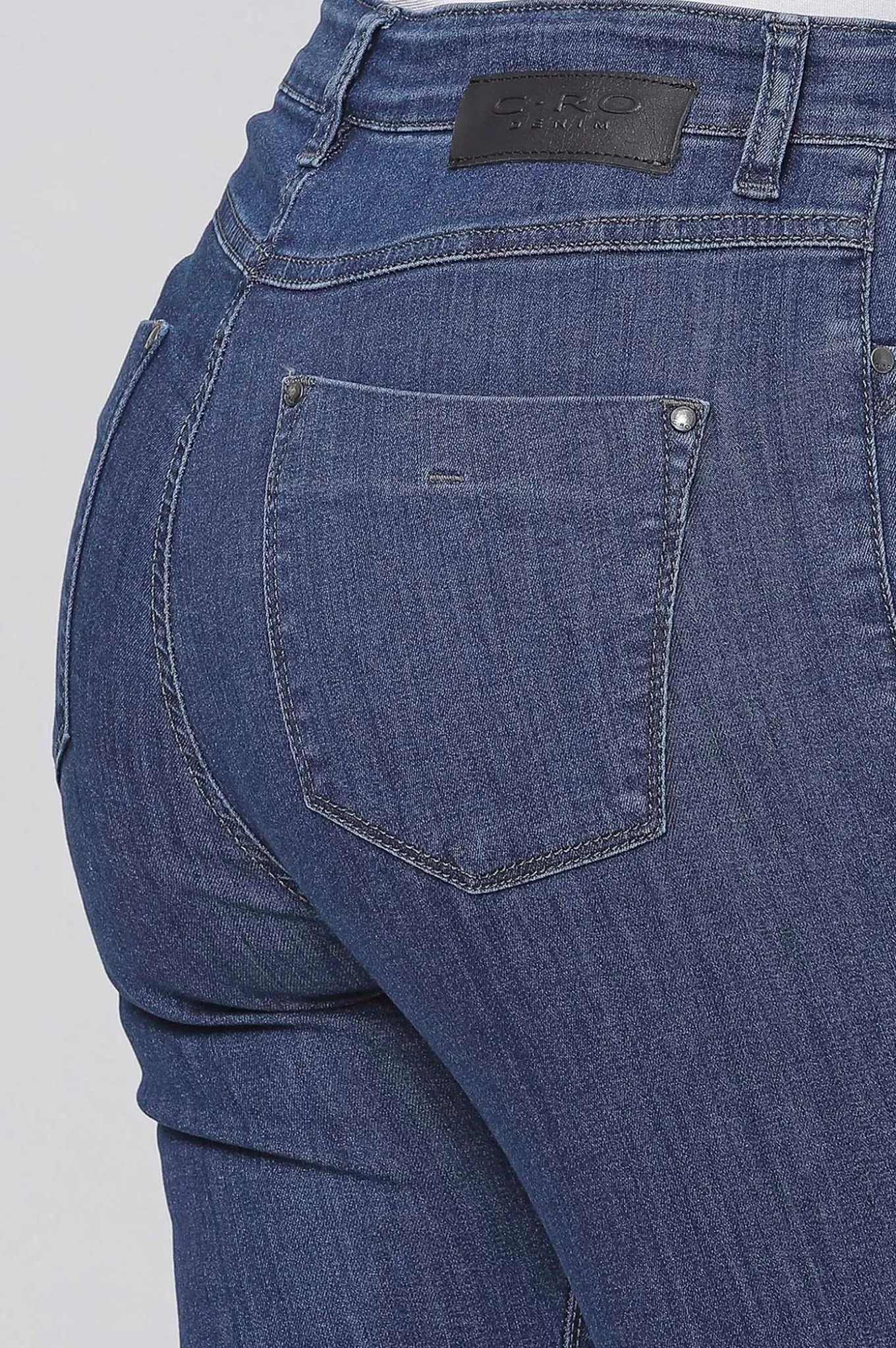 Super lækre denim bukser fra C-RO i en meget strækbar kvalitet. Bukserne er i 7/8 dele længde med en lille lynlås for neden i benene.