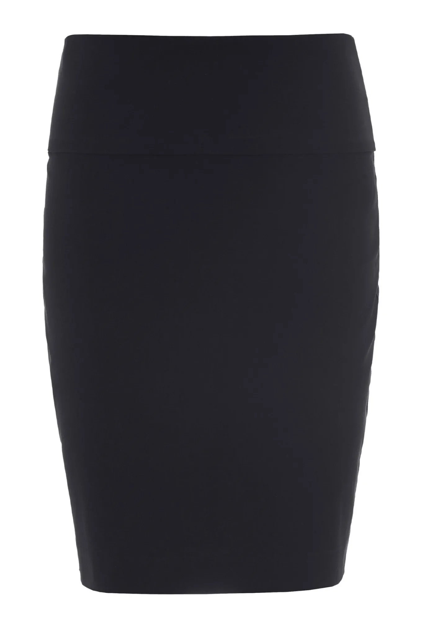 Basisnederdel med klædelig og tætsiddende pasform. Der er stretch i nederdelen, som sikrer en god bevægelighed. Nederdelens brede linning kan trækkes op over maven eller foldes ned for en almindelig taljehøjde. Denne effekt gør den meget behagelig.