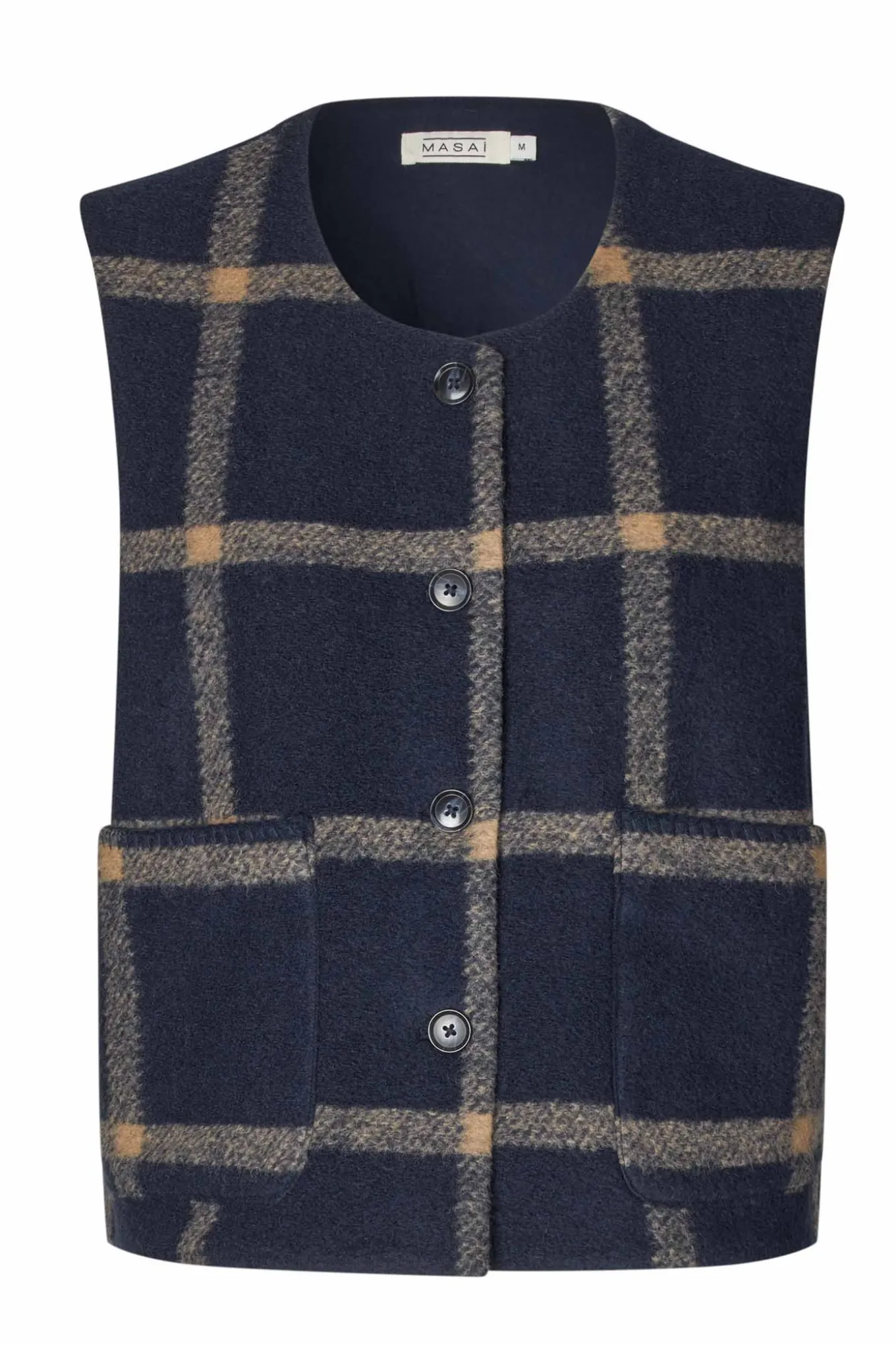 Denne elegante veste fra Masai er perfekt til din garderobe. Den er lavet af en blanding af uld, polyester og akryl, og dens navy blazer farve vil give ethvert outfit et sofistikeret touch.