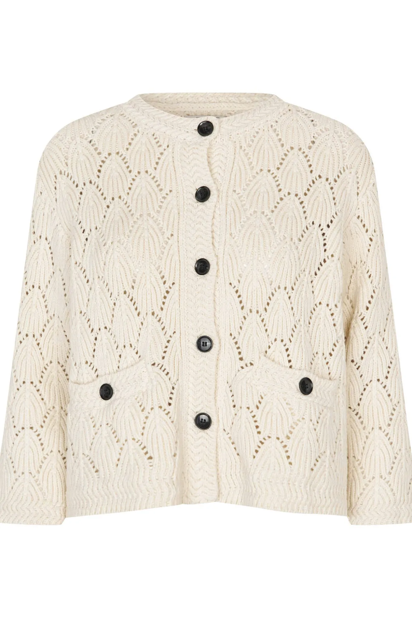 OBS! Fjernlager. Levering kan blive forlænget med 2-3 dage, hvis varen ikke findes i vores butik lige nu.Super sød mønstret cardigan fra Masai med lange ærmer, rund hals og fine lommer foran.Cardigangen har også en afslappet silhuet og knaplukning langs fronten.