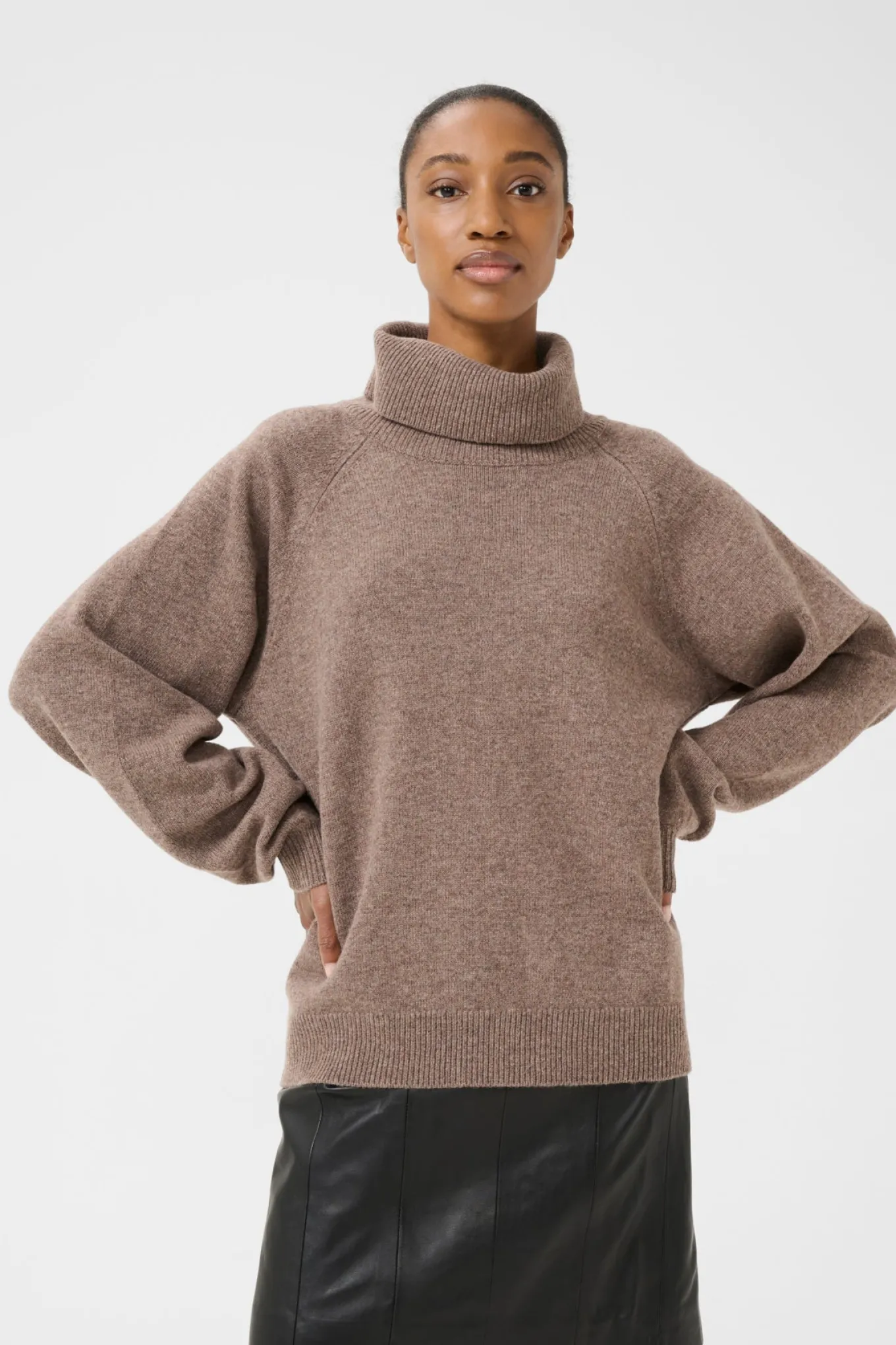 OBS! Fjernlager. Levering kan blive forlænget med 2-3 dage, hvis varen ikke findes i vores butik lige nu.Blød og lækker strik fra Gestuz med lange pufærmer, rullekrave i halsen og en dejlig afslappet silhuet.